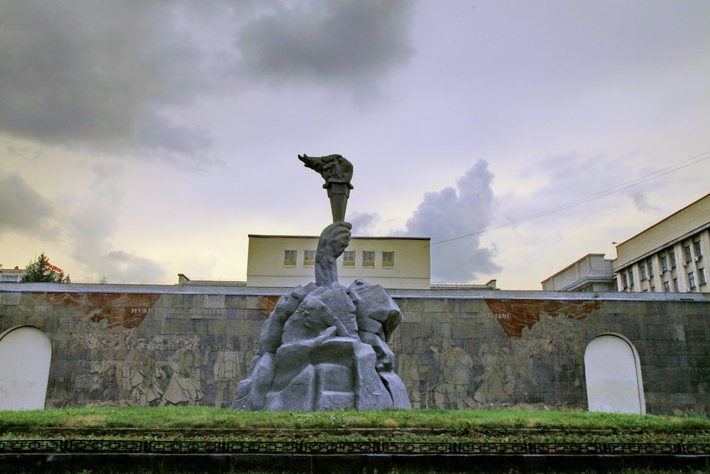 И уже в 18 часов по московскому времени 27 января, в момент, когда тело Ильича погружали в саркофаг, в Челябинске был заложен первый камень в основание будущего сооружения. Получилось оно достаточно эклектичным. Там был и скульптурный памятник Ленину работы скульптора Козлова, в создании которого принимала участие Вера Мухина.