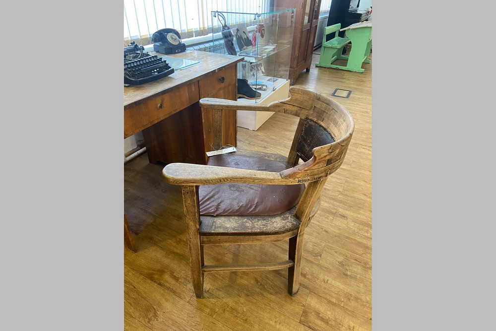 Кресло, о котором идёт речь, интересно само по себе — у него интересные формы. Это был рабочий инструмент Карапета Аршаковича, который он привёз с собой во время эвакуации завода. И кресло сохранилось, оно в неплохом состоянии, мы его поддерживаем. Оно представлено в нашей экспозиции.