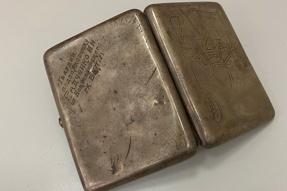 Алёна Овчинникова: Да, конечно. Причём подписывали не только кисеты или портсигары, но и другие простые бытовые вещи тоже оказывались с надписями. Например, поисковики рассказывали, что во время полевых работ в Белоруссии они нашли солдатскую ложку, подписанную фамилией и именем. Когда они стали изучать, какие именно подразделения находились на этой территории, просматривали списки бойцов, то обнаружили, что с таким именем и фамилией там был только один солдат. Таким образом, такой простой предмет, как ложка, помог идентифицировать солдата. Это удивительно, но и так бывает!