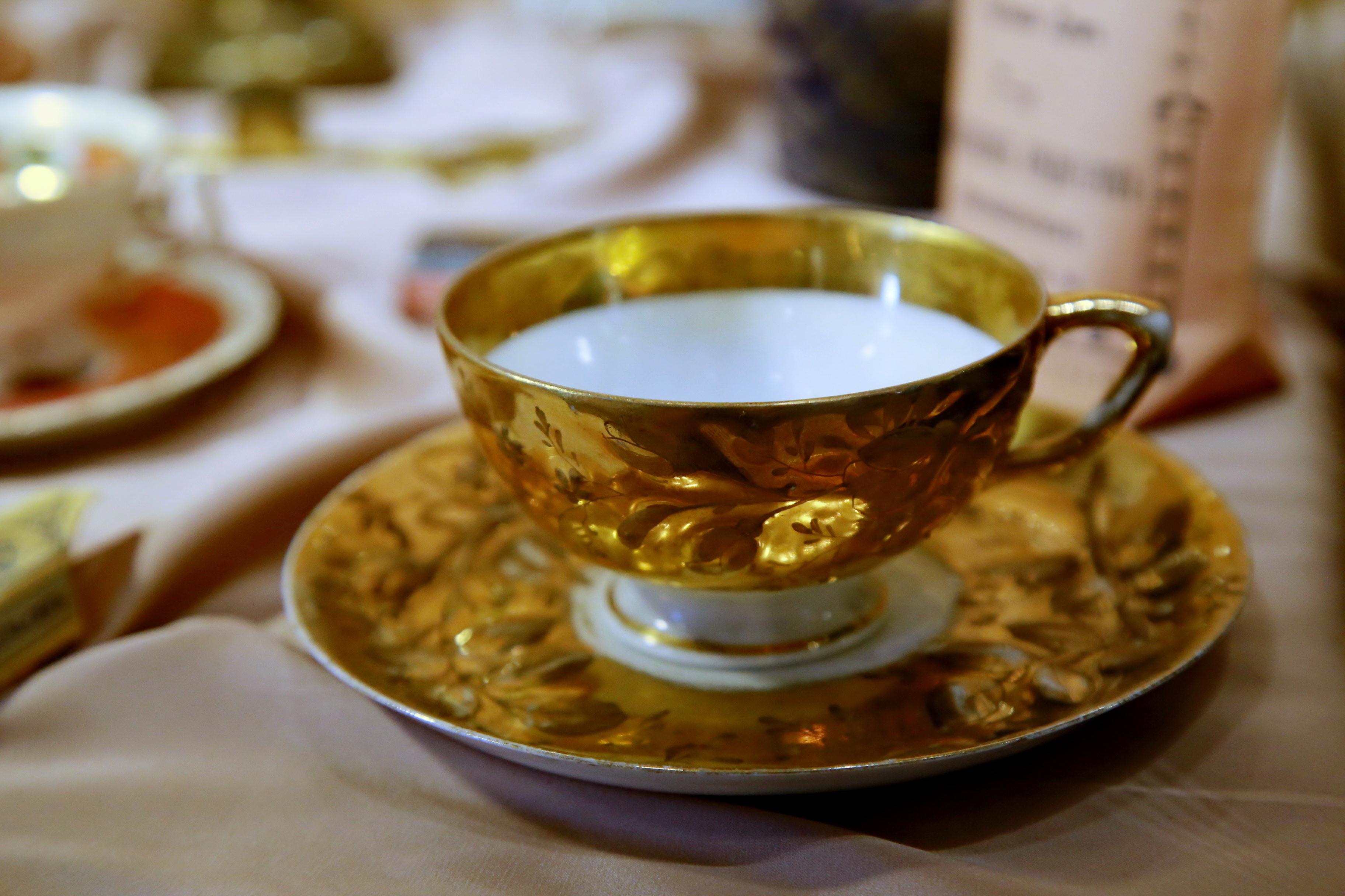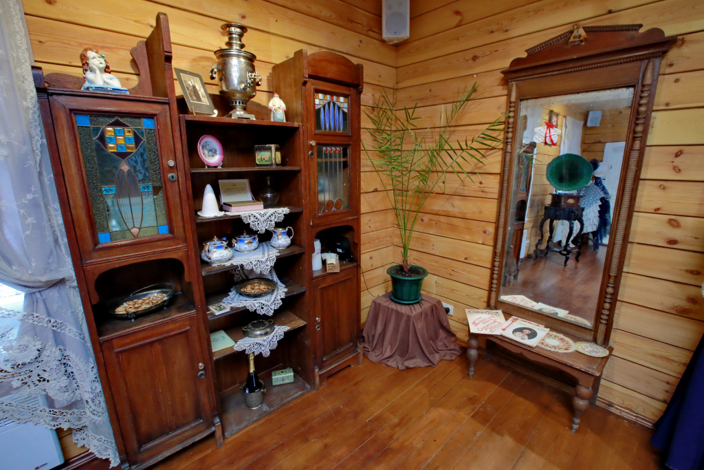Наталия Бруджа: Мы постаралась сделать так, чтобы предметов было не очень много, но чтобы они все были по правде, чтобы они все были оттуда, из конца 19 века. Всё, что там представлено, — на столе, в буфете — это предметы обихода конца 19 века. Наш стол накрыт, он готов принять гостей, за него можно даже присесть — на антикварную мебель конца 19 века.
