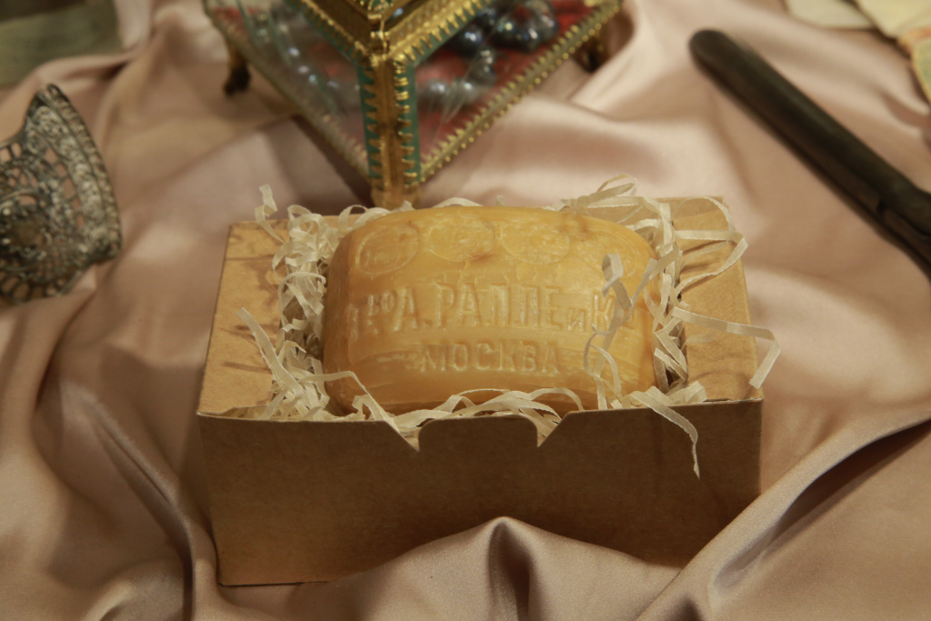 Ещё можно было подарить мыло — это и сейчас тоже неплохой подарок. Особенно ручной работы, хендмейд. Было, например, мыло фирмы «Брокар» — что-то сродни парфюму. У нас также есть мыло конца 19 века, и оно тоже до сих пор пахнет. Это мыло с историей. Его подарили женщине на свадьбу, и она его носила как ароматизатор, подкладывая его себе в платье.