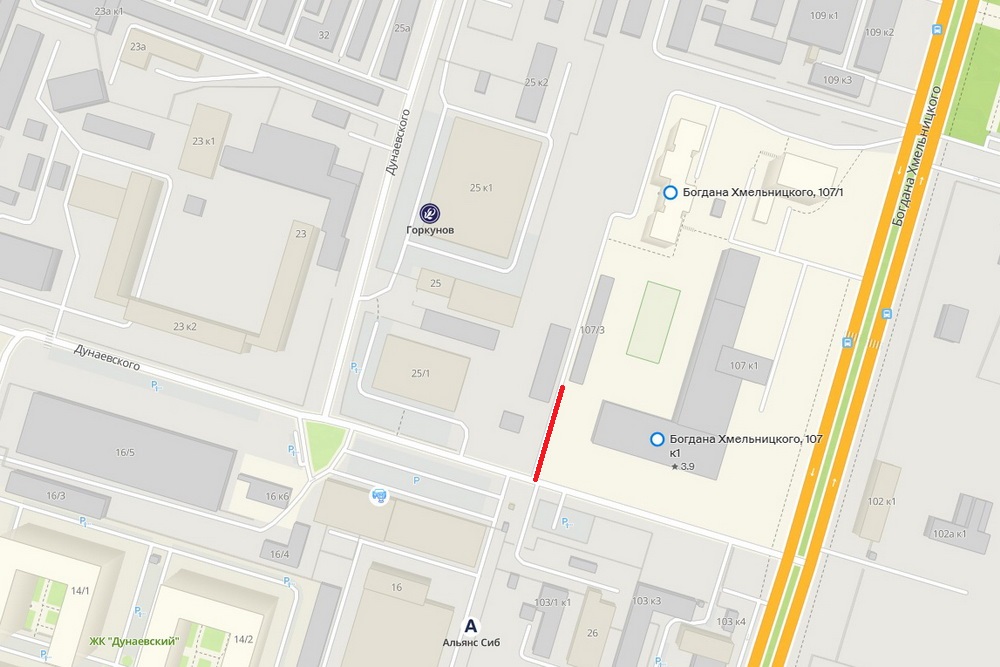 До 29 сентября закрыта дорога от улицы Дунаевского к зданию с адресом Богдана Хмельницкого, 107, к. 1. Автомобилистам, желающим проложить маршрут в этом месте, придётся воспользоваться альтернативными путями.