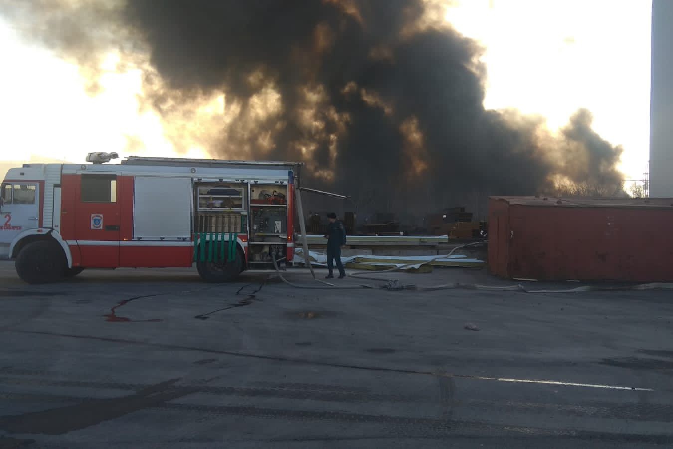 Дополнение: В пожарной службе рассказали, что открытый огонь удалось потушить к 13:50. После этого бригады остались на месте, чтобы продолжить проливать и разбирать покрышки.