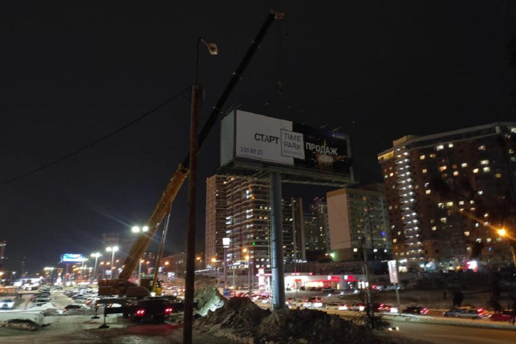 В среду, 21 декабря, возле двух крупнейших торговых центров Новосибирска убрали три огромных рекламных суперсайта, стоявших на 13-метровых столбах. На прошлой неделе такую же конструкцию демонтировали у ТЦ «Сибирский молл».