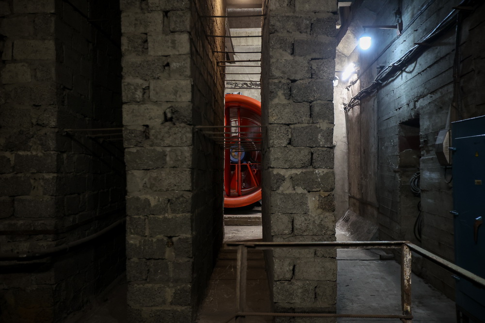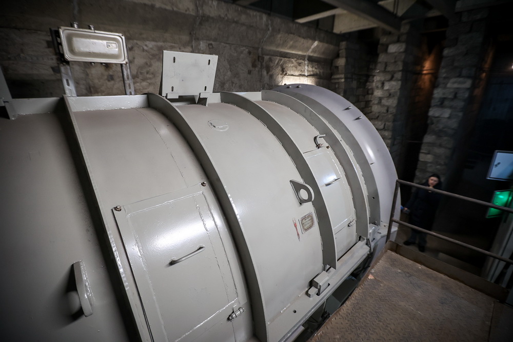 Агрегат находится под землёй на глубине 15 метров. Спуститься к нему можно через вентиляционную камеру.