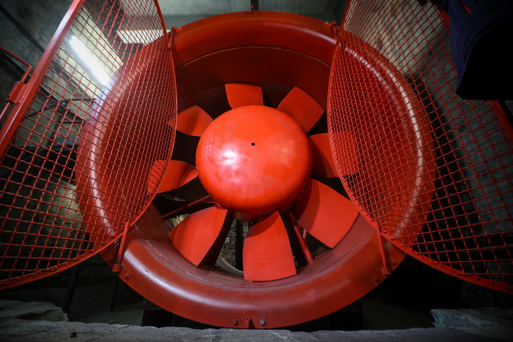 Теперь установка в два раза мощнее прежней. Раньше вентилятор выдавал на станции и перегоны 180 тысяч кубометров воздуха в час. Сейчас машина за такой же промежуток времени способна нагнать до 380 тысяч кубических метров.