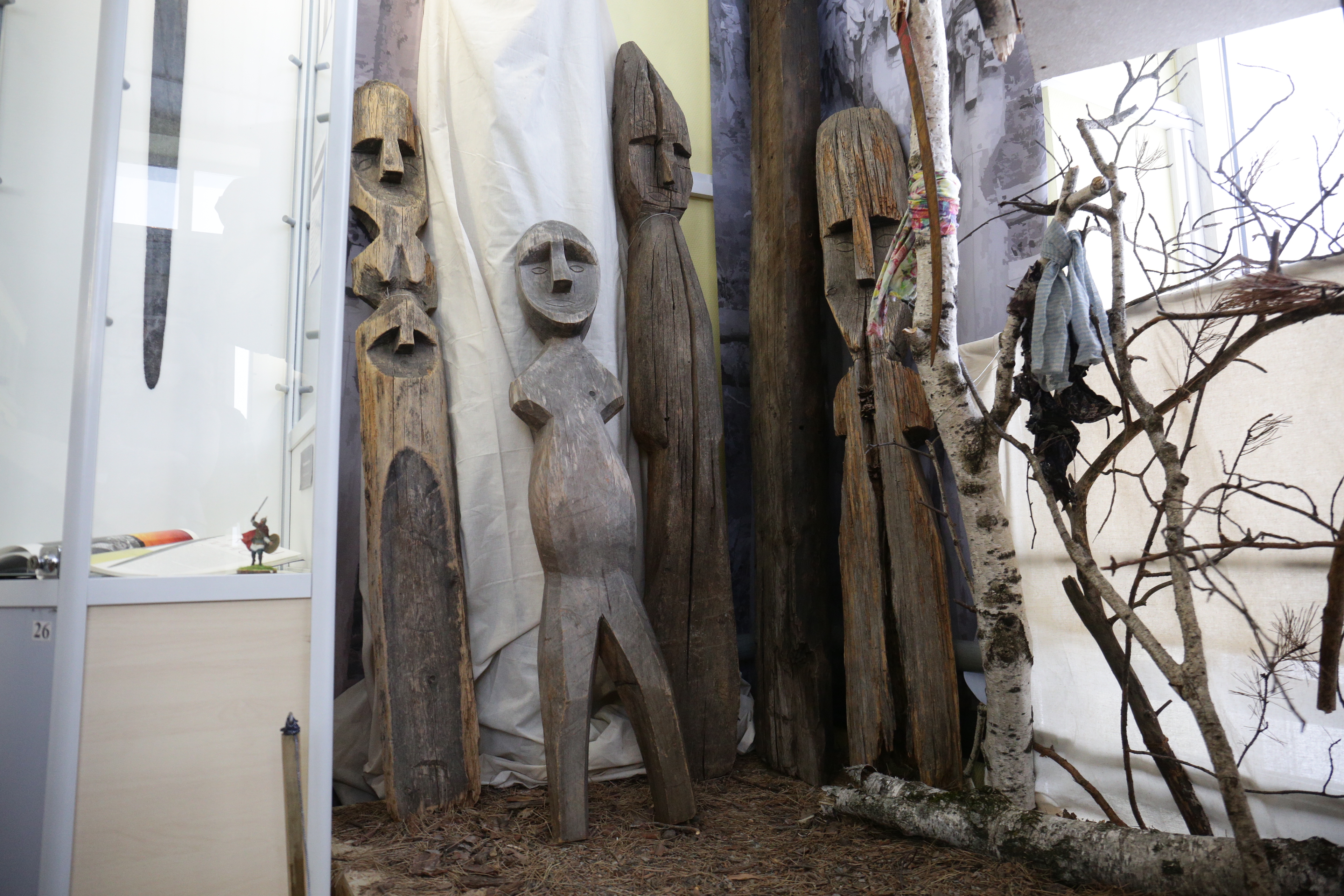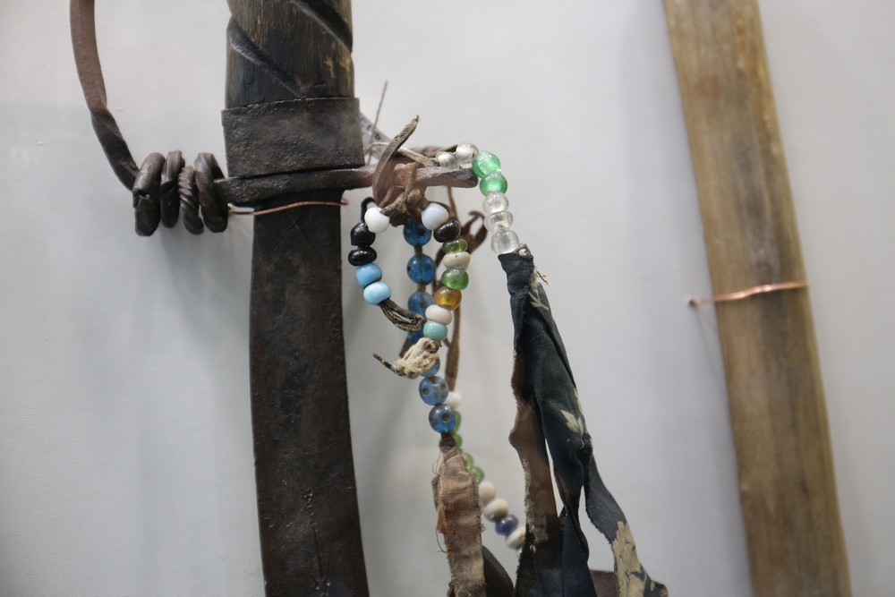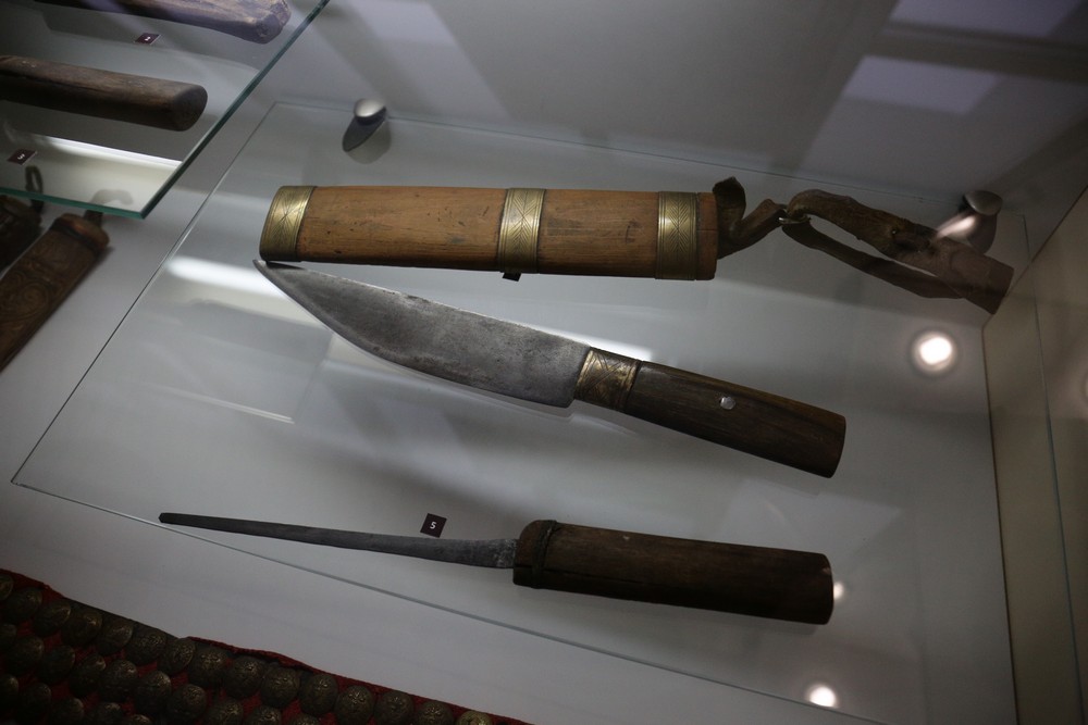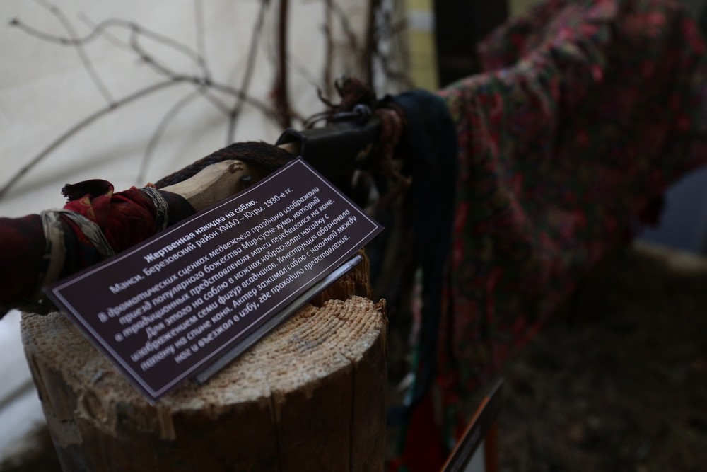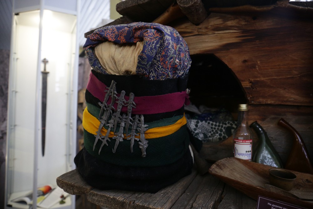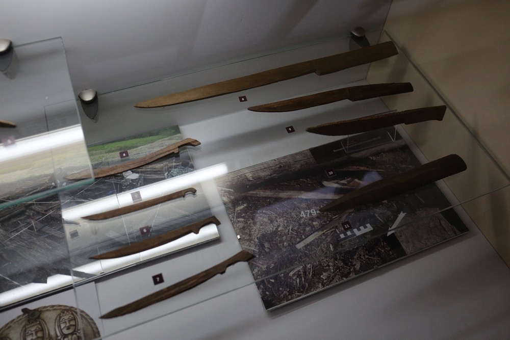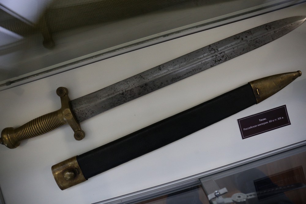 Большая часть экспонатов — так называемое вотивное оружие. Его приносили в дар божествам с просьбами о здоровье и благополучии. Есть тут и клинки, которые применяли в обрядах коренные народы Сибири. Узнать такое оружие можно по внешнему виду — на клинках начертаны пиктограммы, изображены животные и человеческие фигурки.