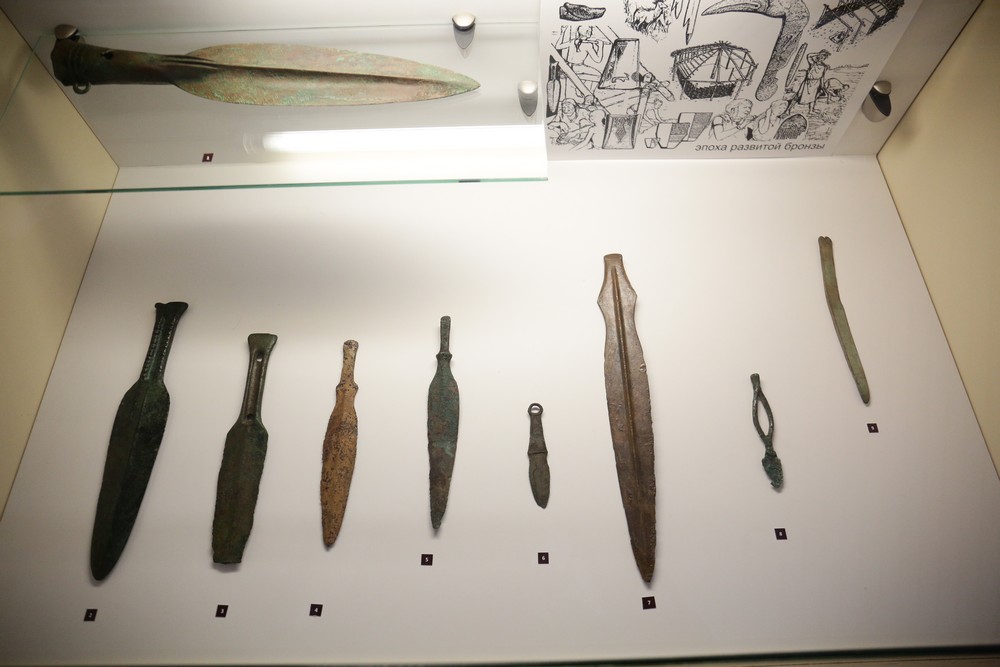 Археологические находки, представленные на выставке клинкового оружия, будоражат воображение. Так и видишь перед собой шамана, который шепчет таинственное заклинание и начищает блестящую саблю для своей ворожбы.