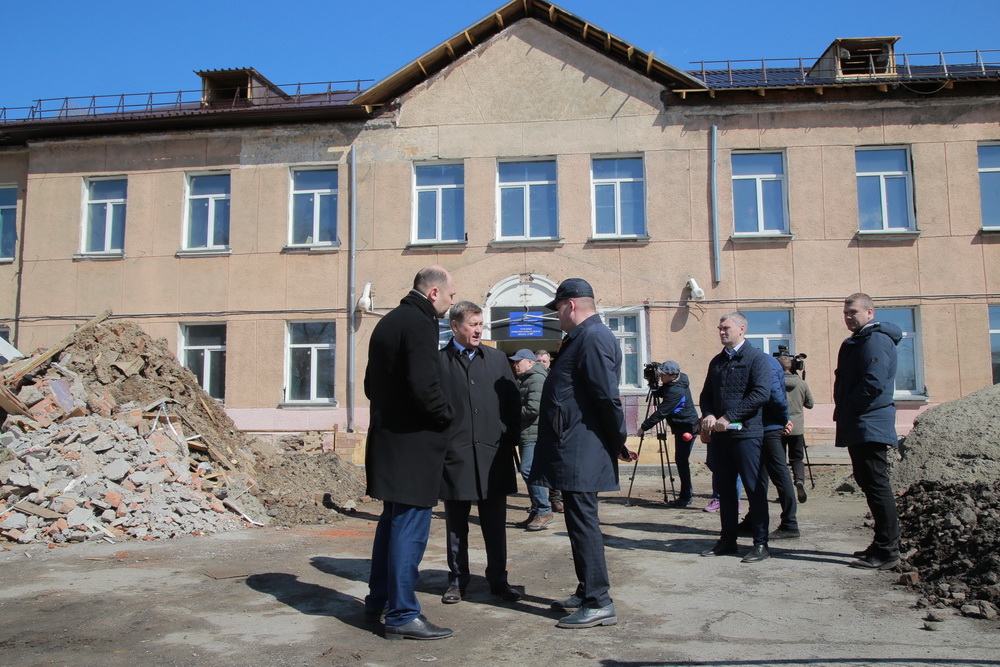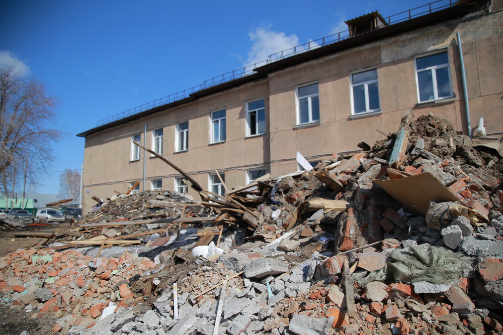 По факту от здания школы остались только стены, а крыша, полы и перекрытия вынесены во двор. Скоро строительный мусор вывезут, а к завершению реконструкции — 1 сентября 2022 года — территорию полностью благоустроят.