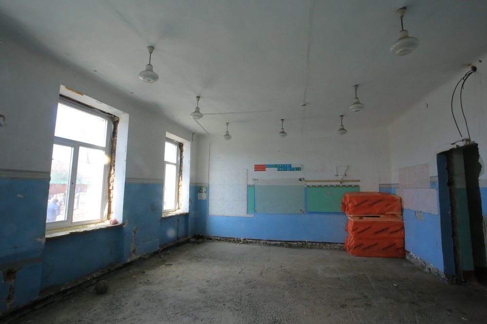 Крышу приподняли и заменили. Среди прочих работ — замена электропроводки, системы отопления, вентиляции, окон в кабинетах и спортзале, а также дальнейшее оснащение школы всем необходимым для учёбы.