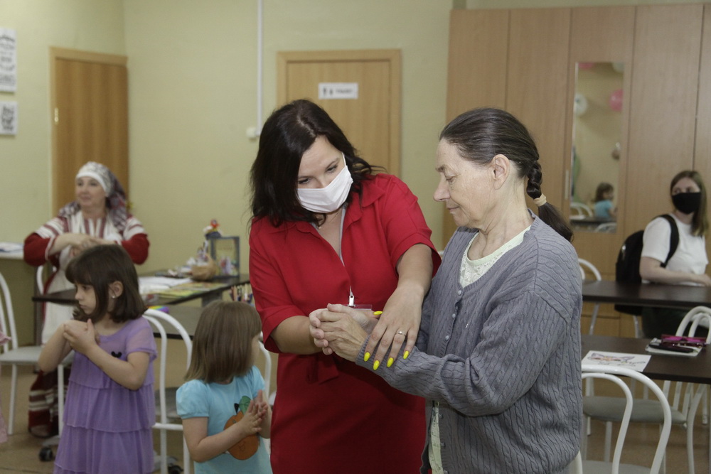 Сегодня мастерят кукол из ткани. Встречи длятся около трёх часов — чтобы не устать. Прикладное творчество развивает моторику и даёт возможность пообщаться за приятным делом. Совместные занятия детей и пожилых идут на пользу всем участникам.