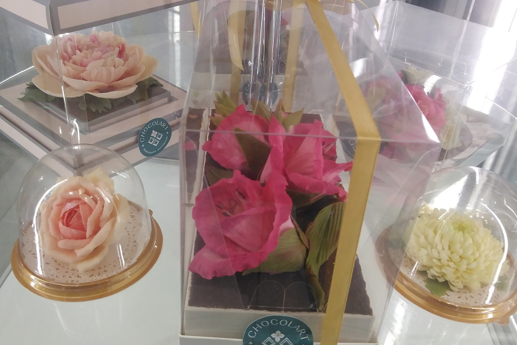 Кроме конфет и классического шоколада, здесь продают съедобные шоколадные цветы, имеющие невероятное сходство с живыми.