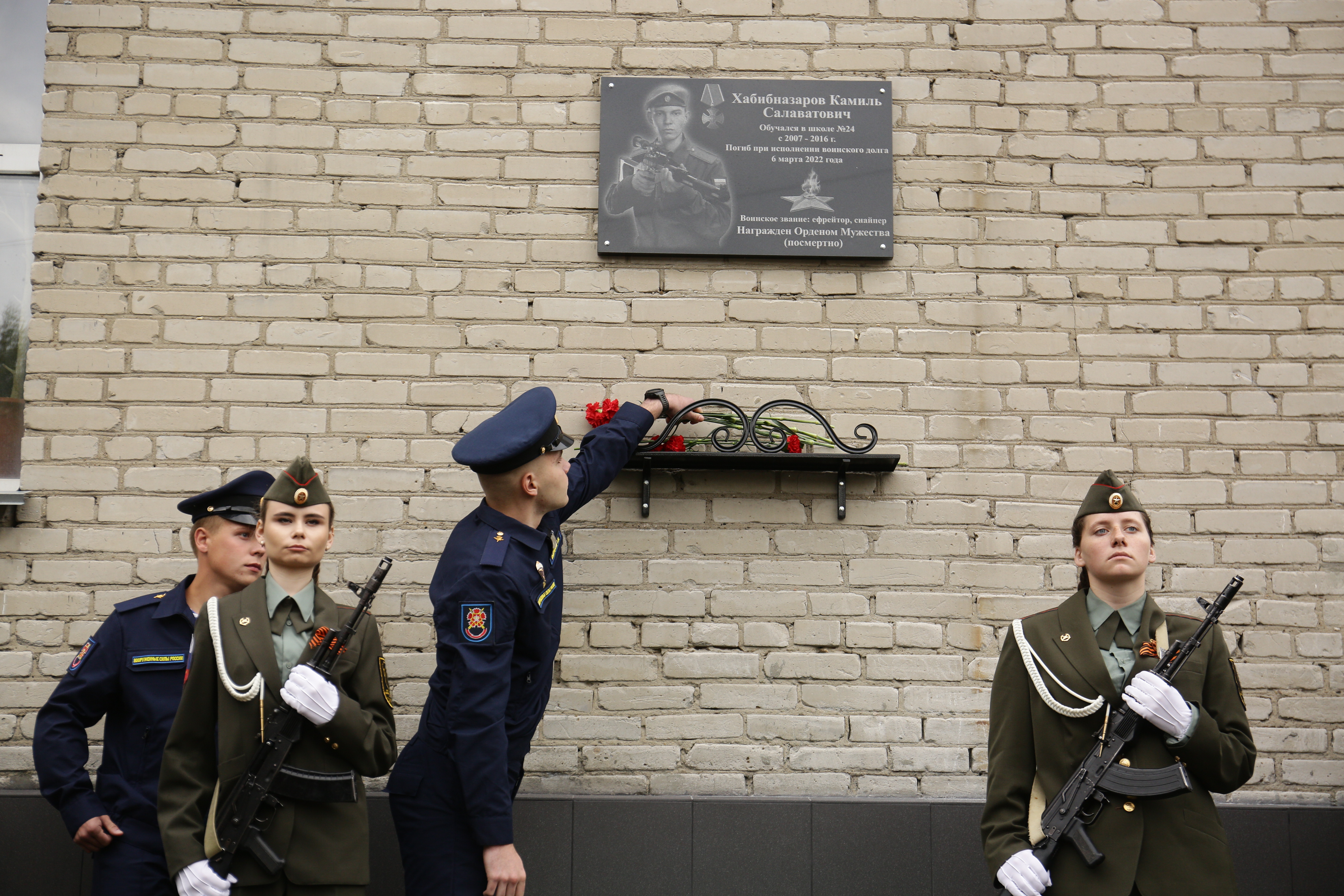 Мемориальную доску в честь военнослужащего-контрактника Камиля Хабибназарова разместили на здании школы №24. Здесь он окончил девять классов. Погиб Камиль во время специальной операции на территории Украины.
