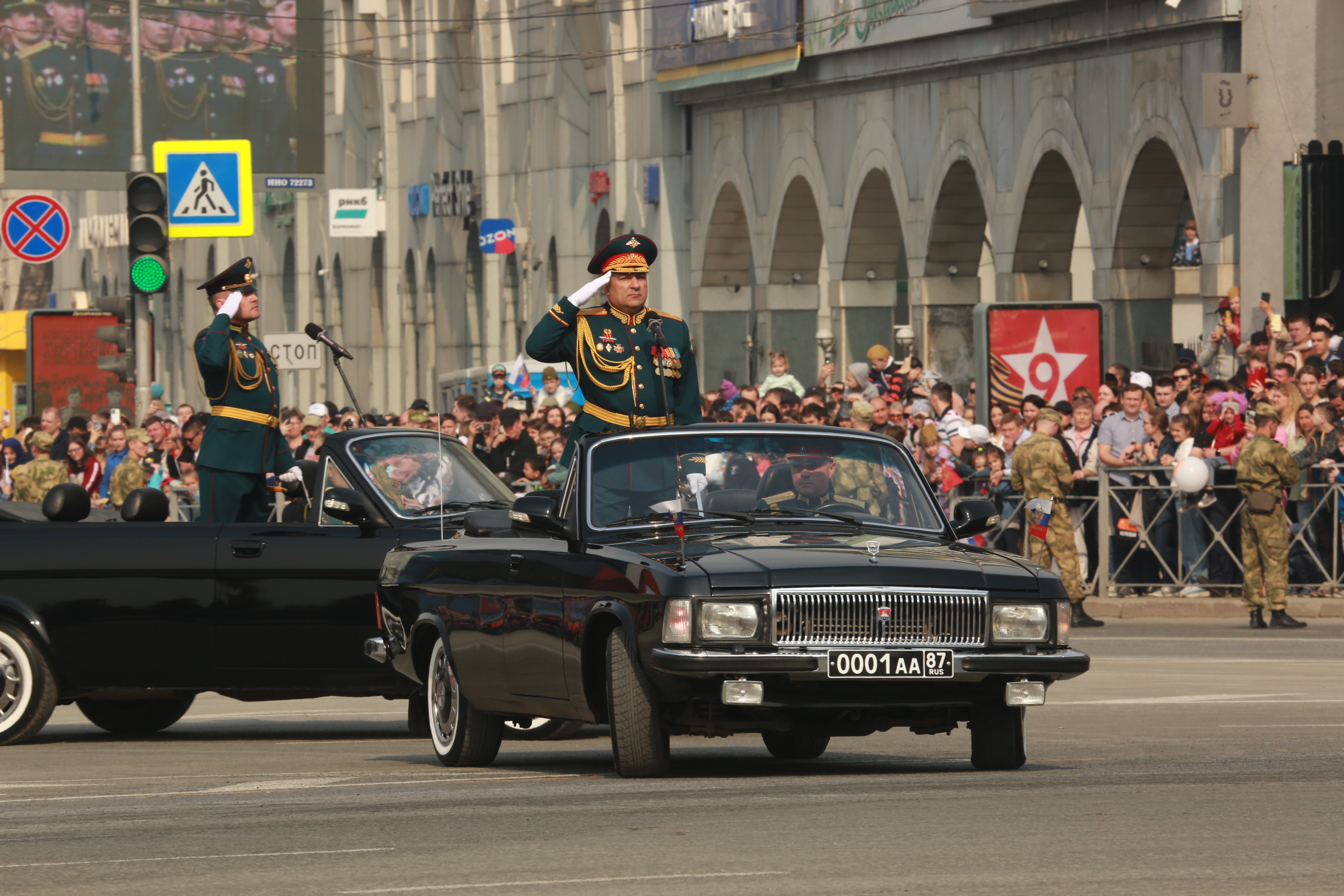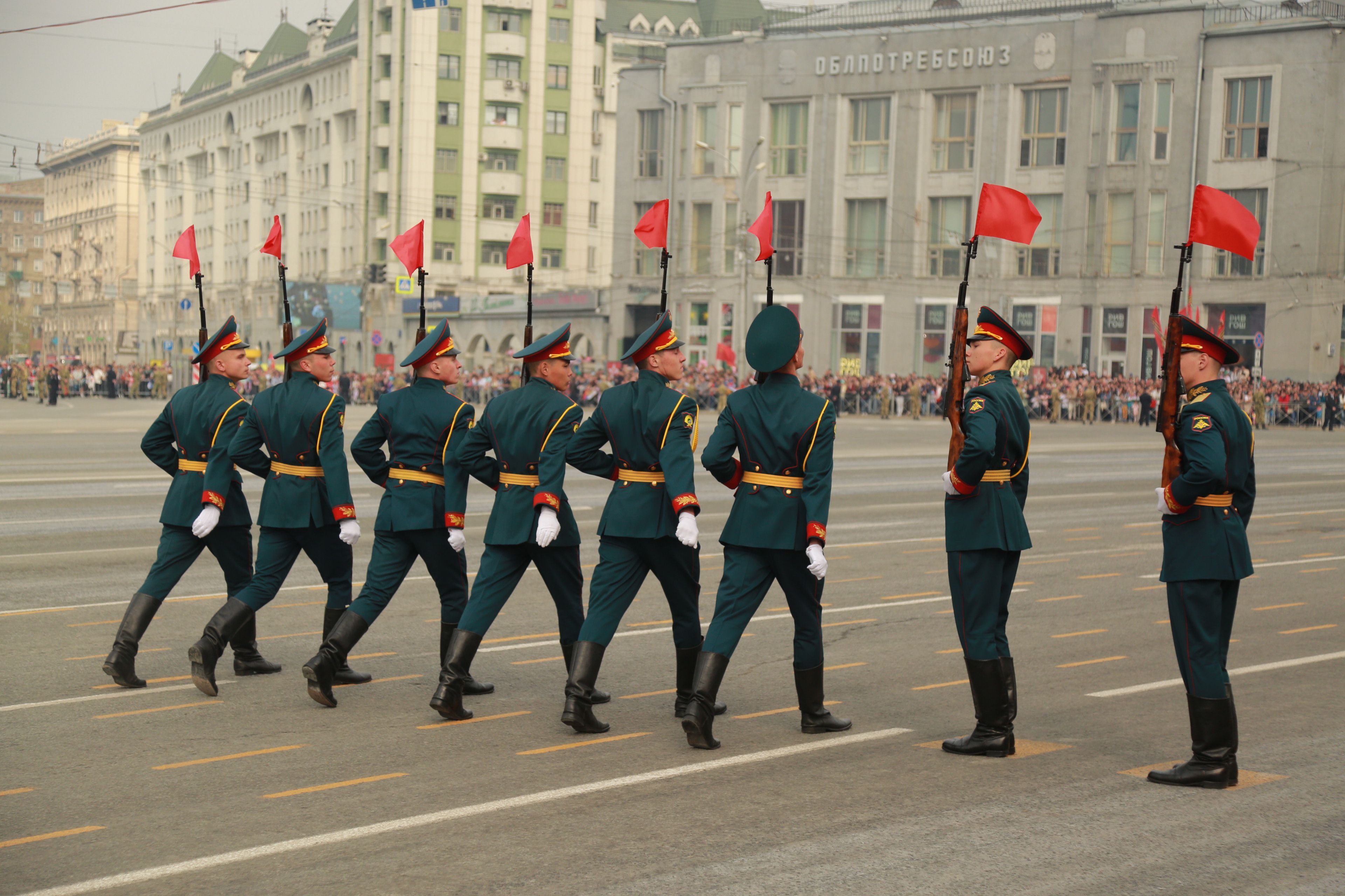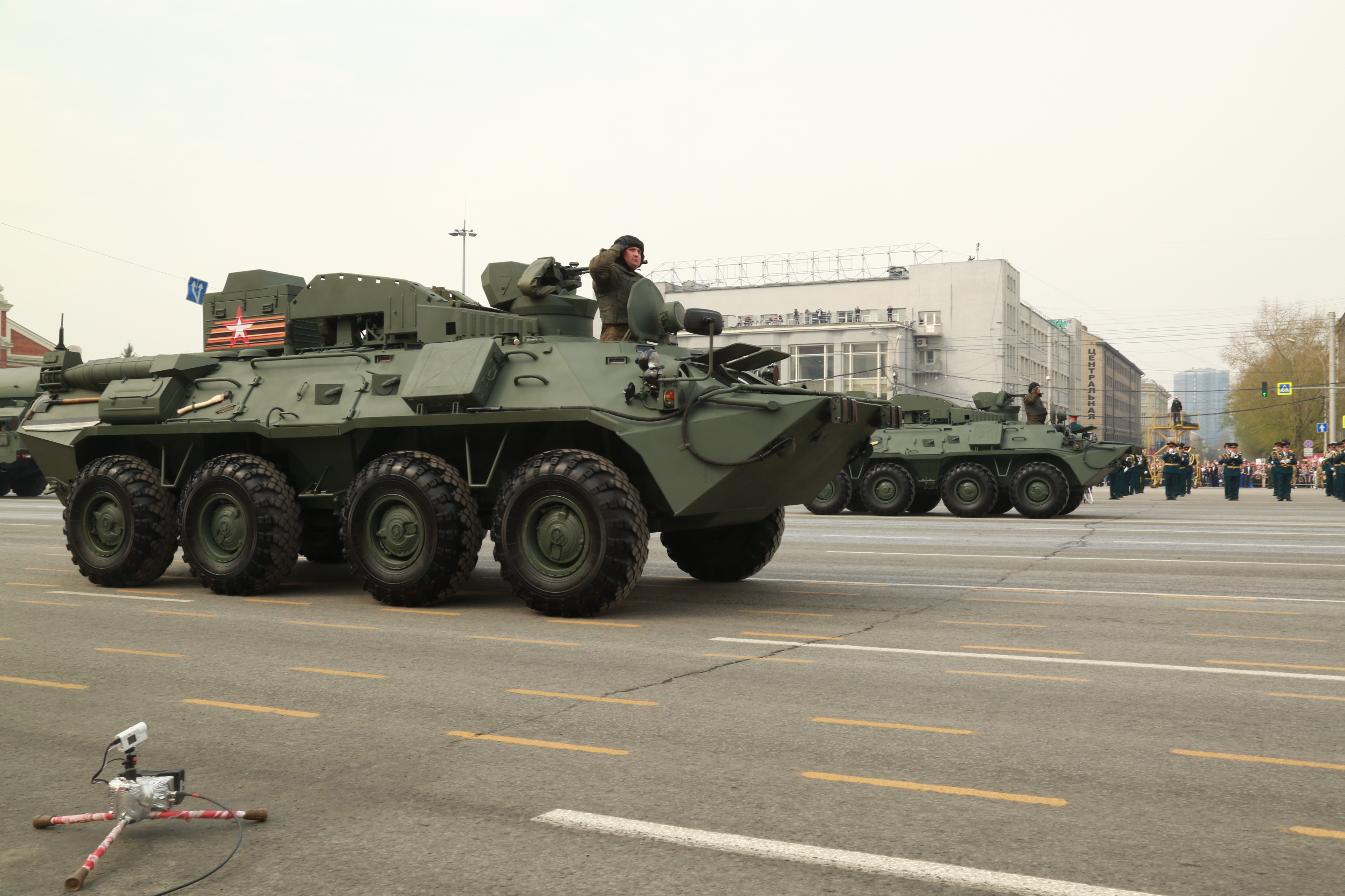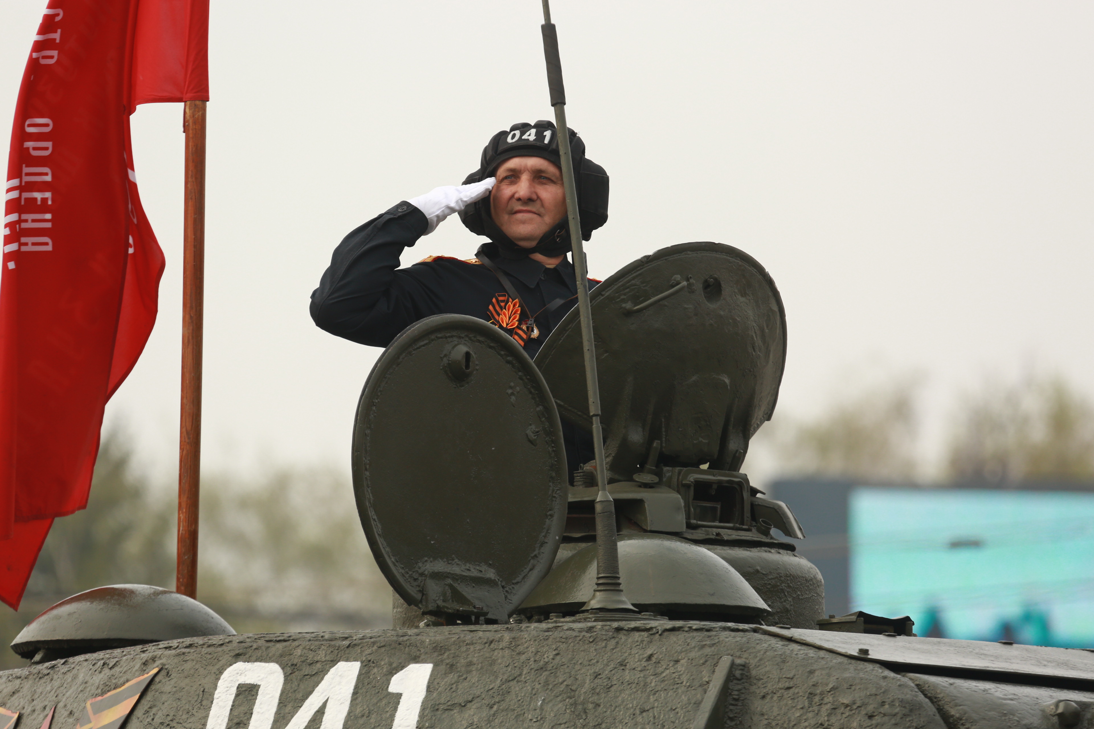 По площади Ленина стройными колоннами прошли военные расчёты: более 2000 представителей армии, силовых структур, курсантов, кадетов. Следом проехала боевая техника, возглавил которую символ Победы — легендарный танк Т-34. За ним потянулись БТРы, станции для военной связи, ракетные комплексы «Искандер», С-400 «Триумф», «Ярс», разведывательная машина «Тайфун», мотовездеходы. Зрелищности параду добавил пролёт авиации: двух Су-34 и турбовинтового самолёта ТВС-2МС.