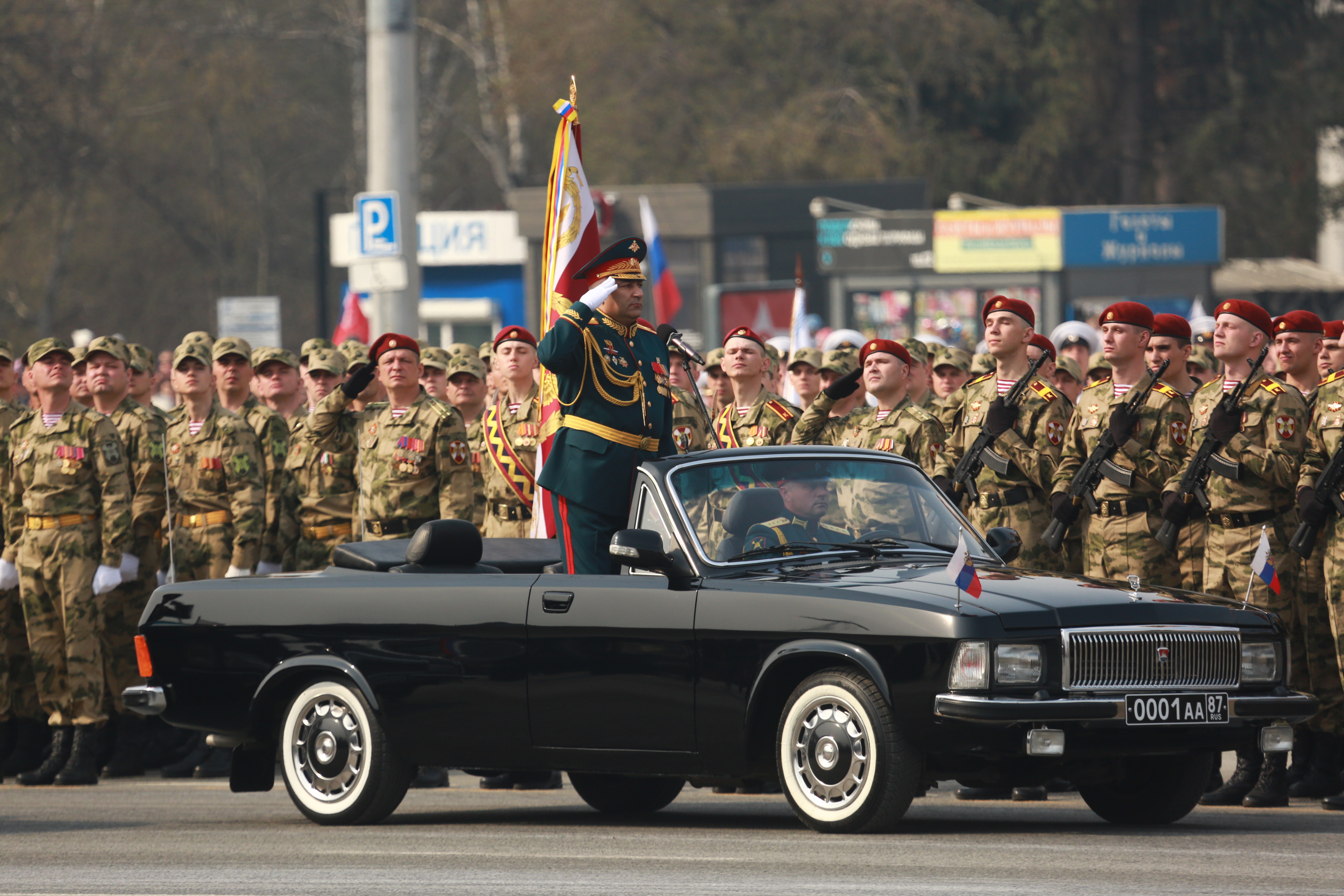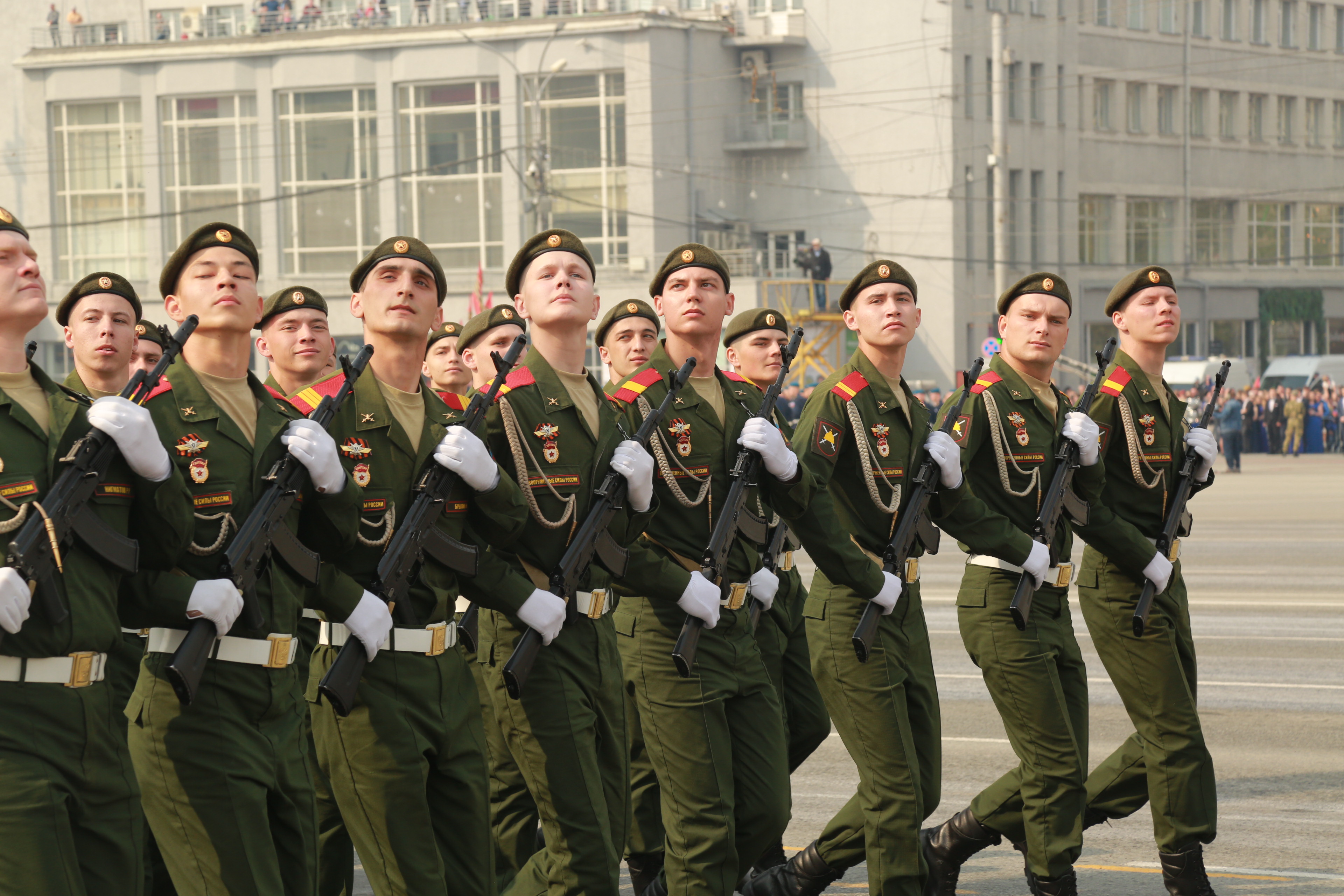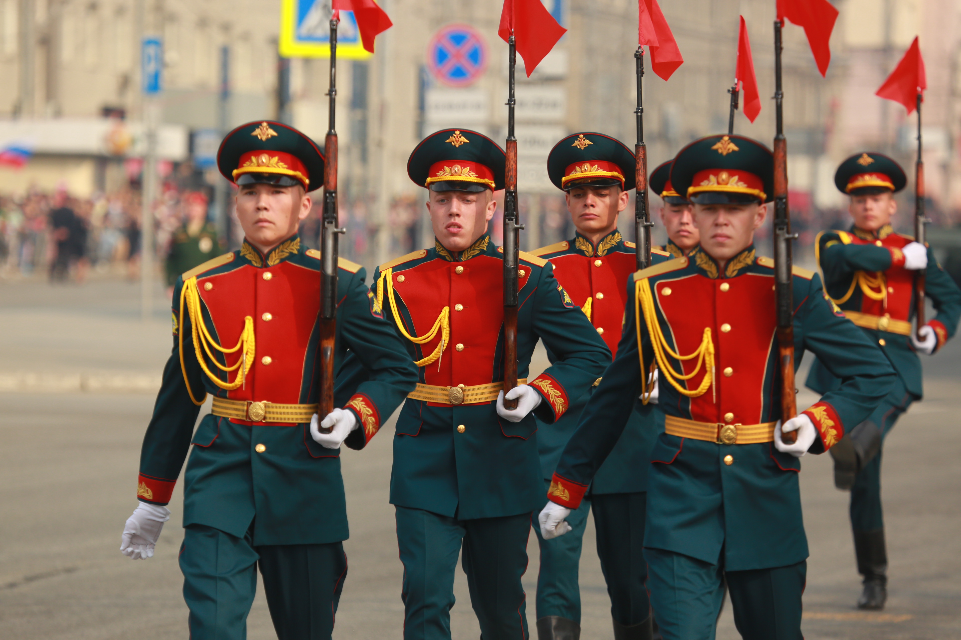 По площади Ленина стройными колоннами прошли военные расчёты: более 2000 представителей армии, силовых структур, курсантов, кадетов. Следом проехала боевая техника, возглавил которую символ Победы — легендарный танк Т-34. За ним потянулись БТРы, станции для военной связи, ракетные комплексы «Искандер», С-400 «Триумф», «Ярс», разведывательная машина «Тайфун», мотовездеходы. Зрелищности параду добавил пролёт авиации: двух Су-34 и турбовинтового самолёта ТВС-2МС.
