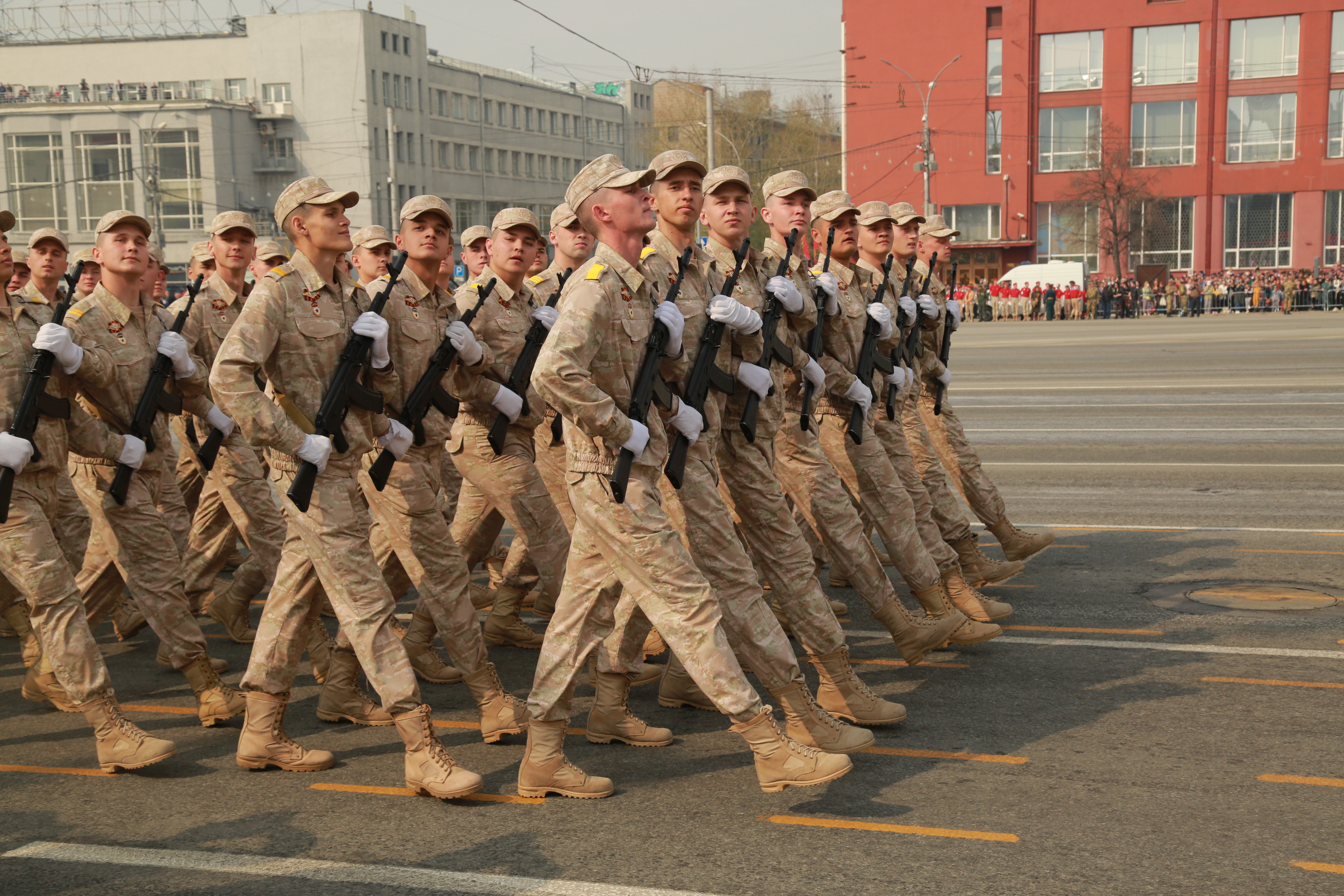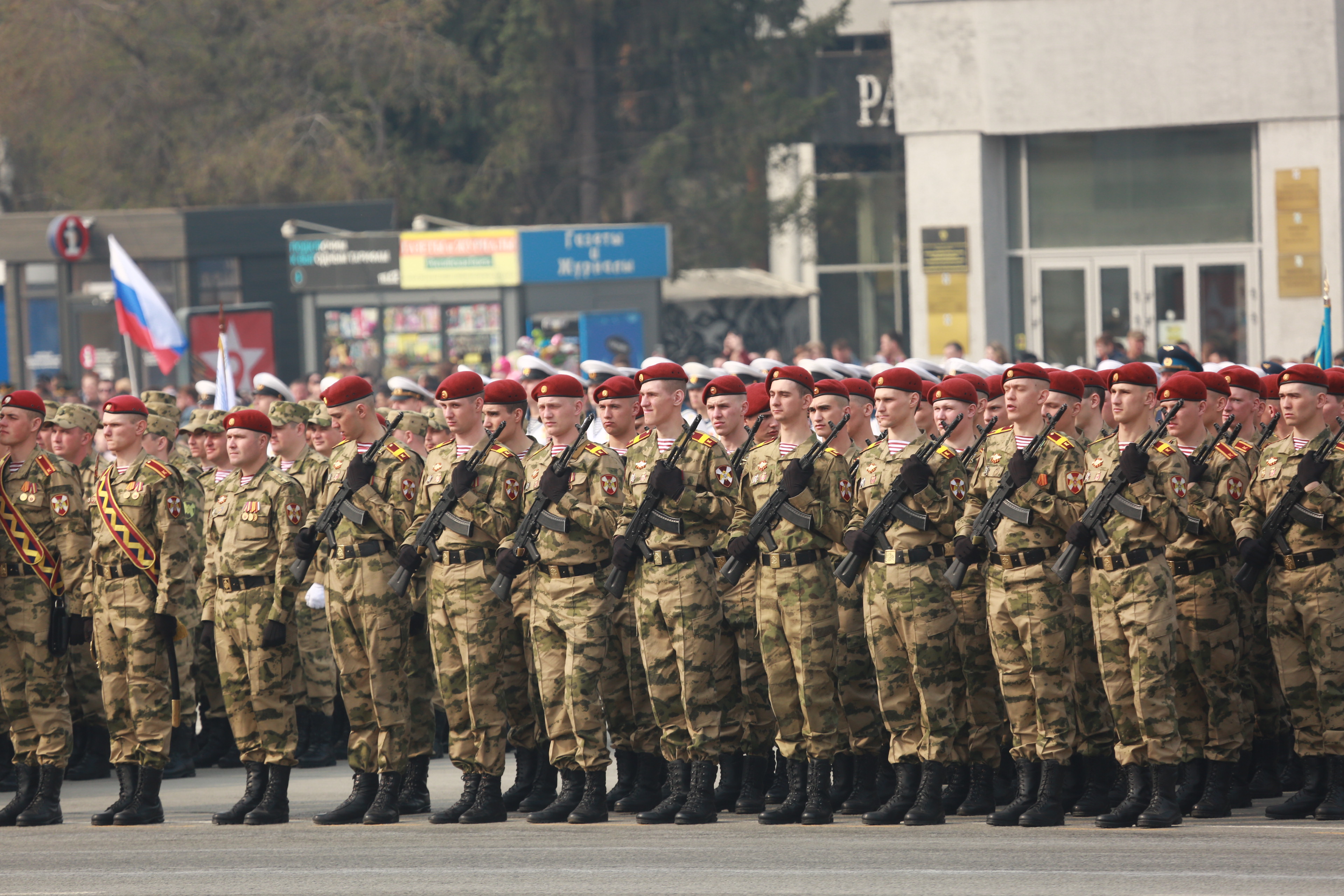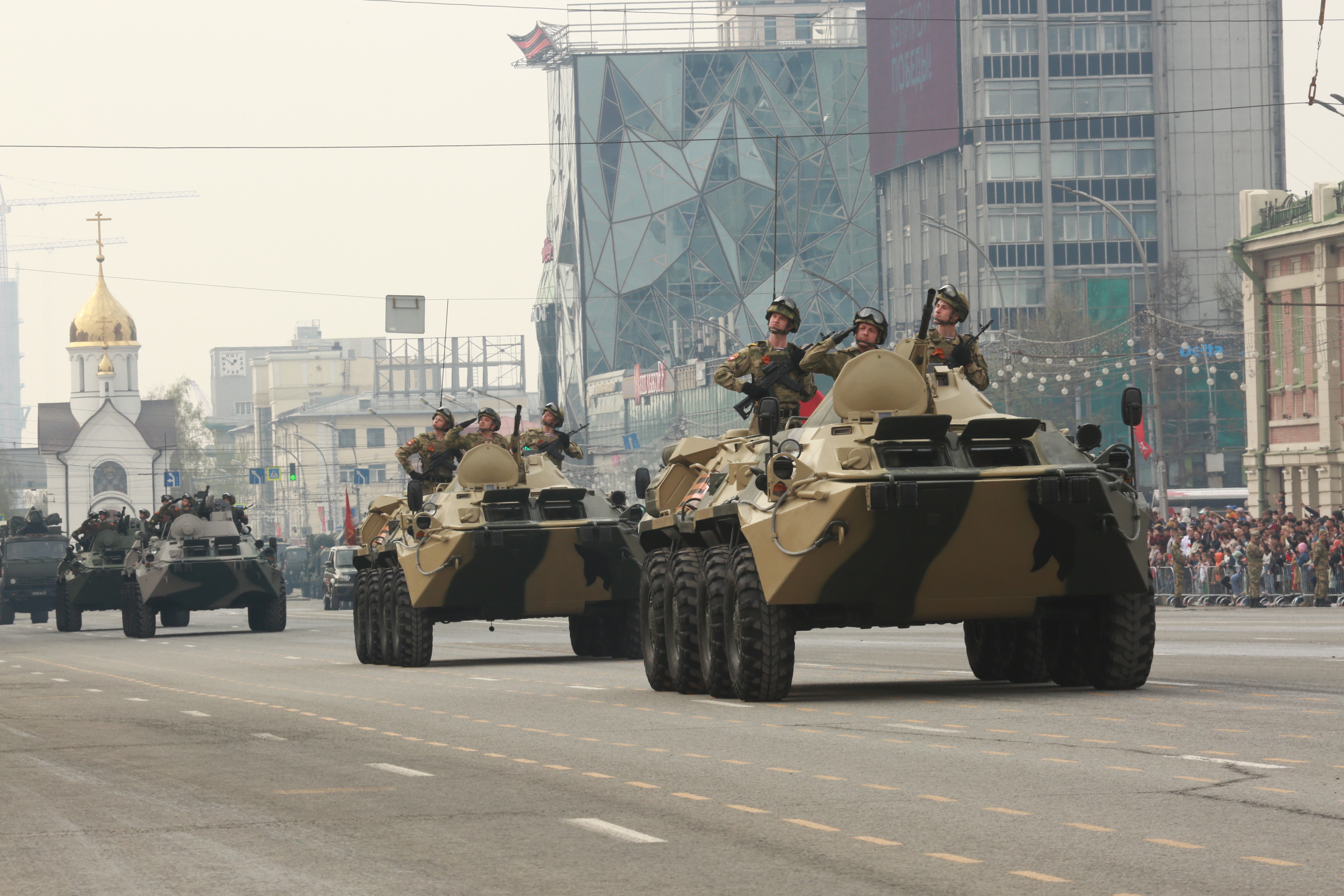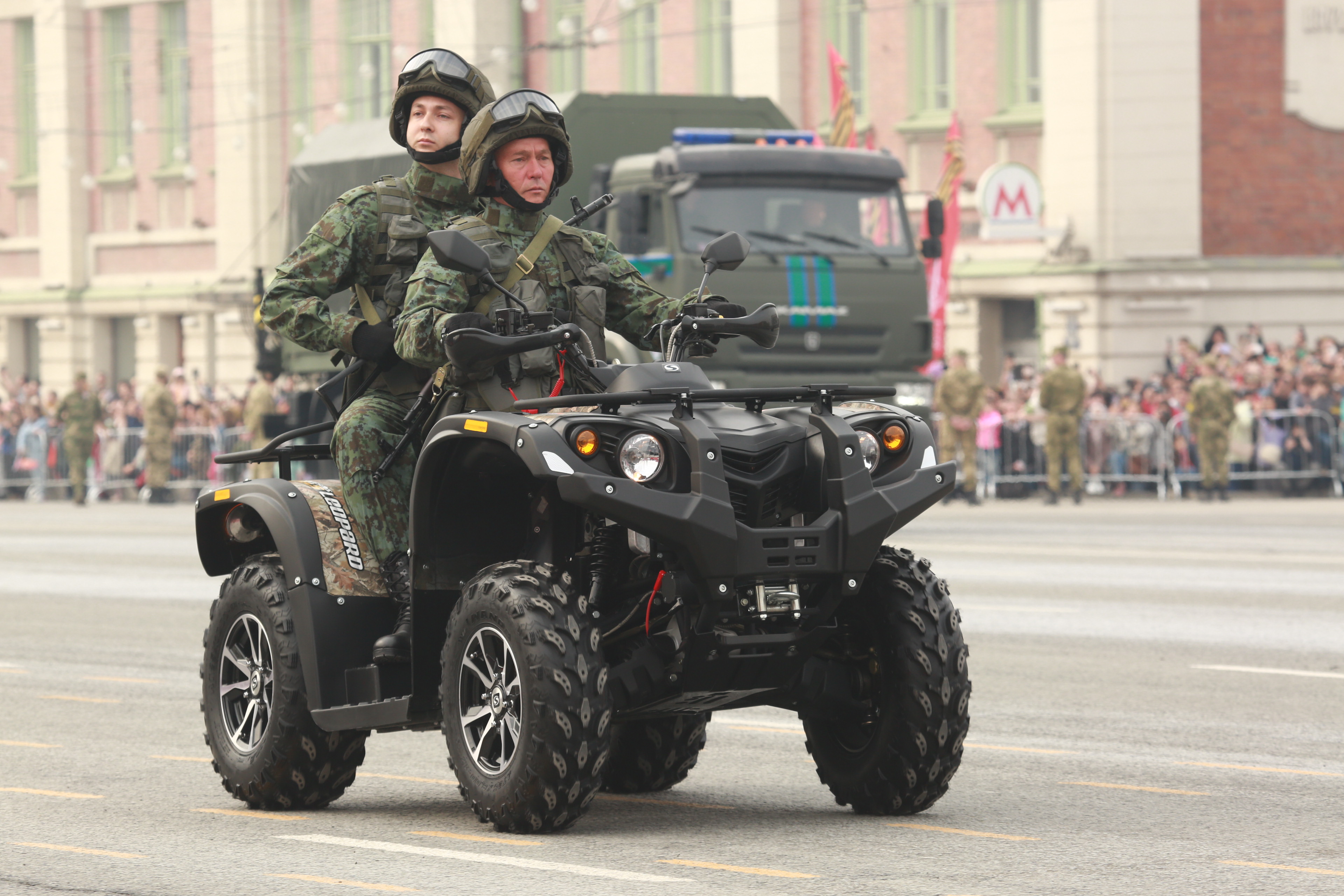 По площади Ленина стройными колоннами прошли военные расчёты: более 2000 представителей армии, силовых структур, курсантов, кадетов. Следом проехала боевая техника, возглавил которую символ Победы — легендарный танк Т-34. За ним потянулись БТРы, станции для военной связи, ракетные комплексы «Искандер», С-400 «Триумф», «Ярс», разведывательная машина «Тайфун», мотовездеходы. Зрелищности параду добавил пролёт авиации: двух Су-34 и турбовинтового самолёта ТВС-2МС.
