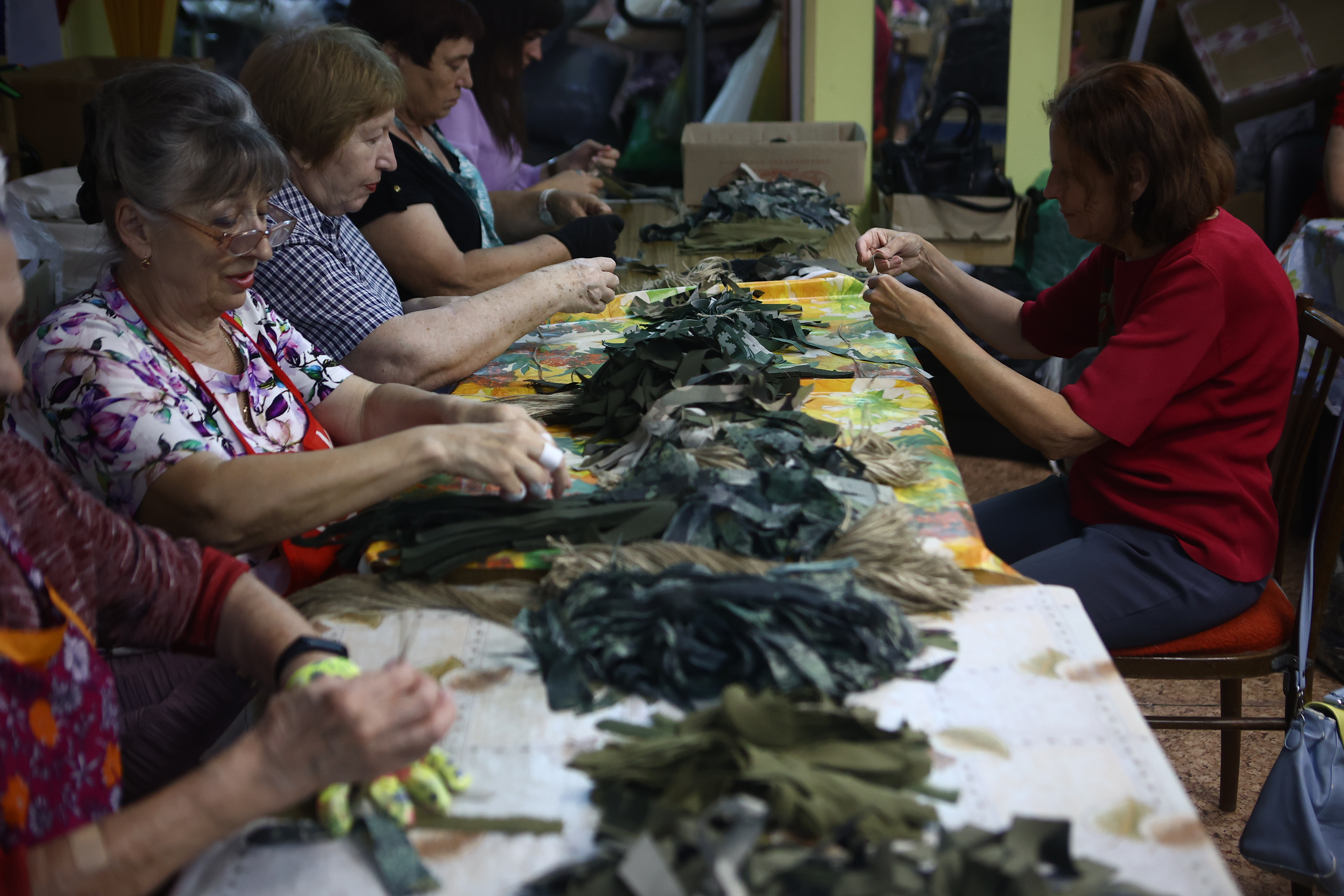А в ТОС «Фрунзенский» готовят маскировочные сети, браслеты выживания и небольшие сувениры для бойцов, которые служат на передовой. Работу активисты не прекращают даже в выходные.