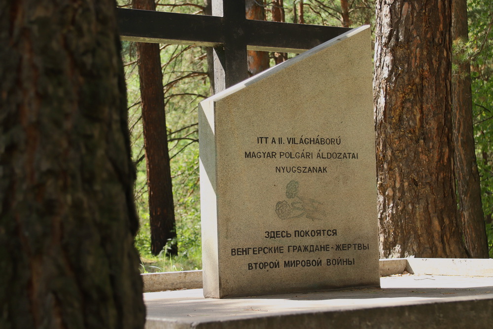 Это мемориал военнопленным из лагеря №199, расположенный в лесу рядом с улицей Баганской.