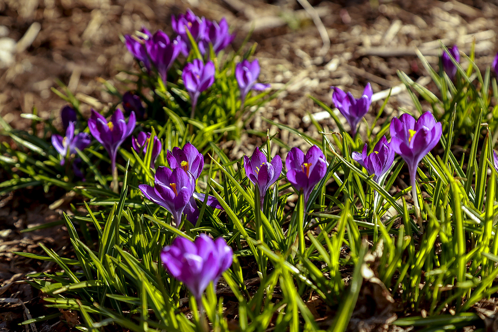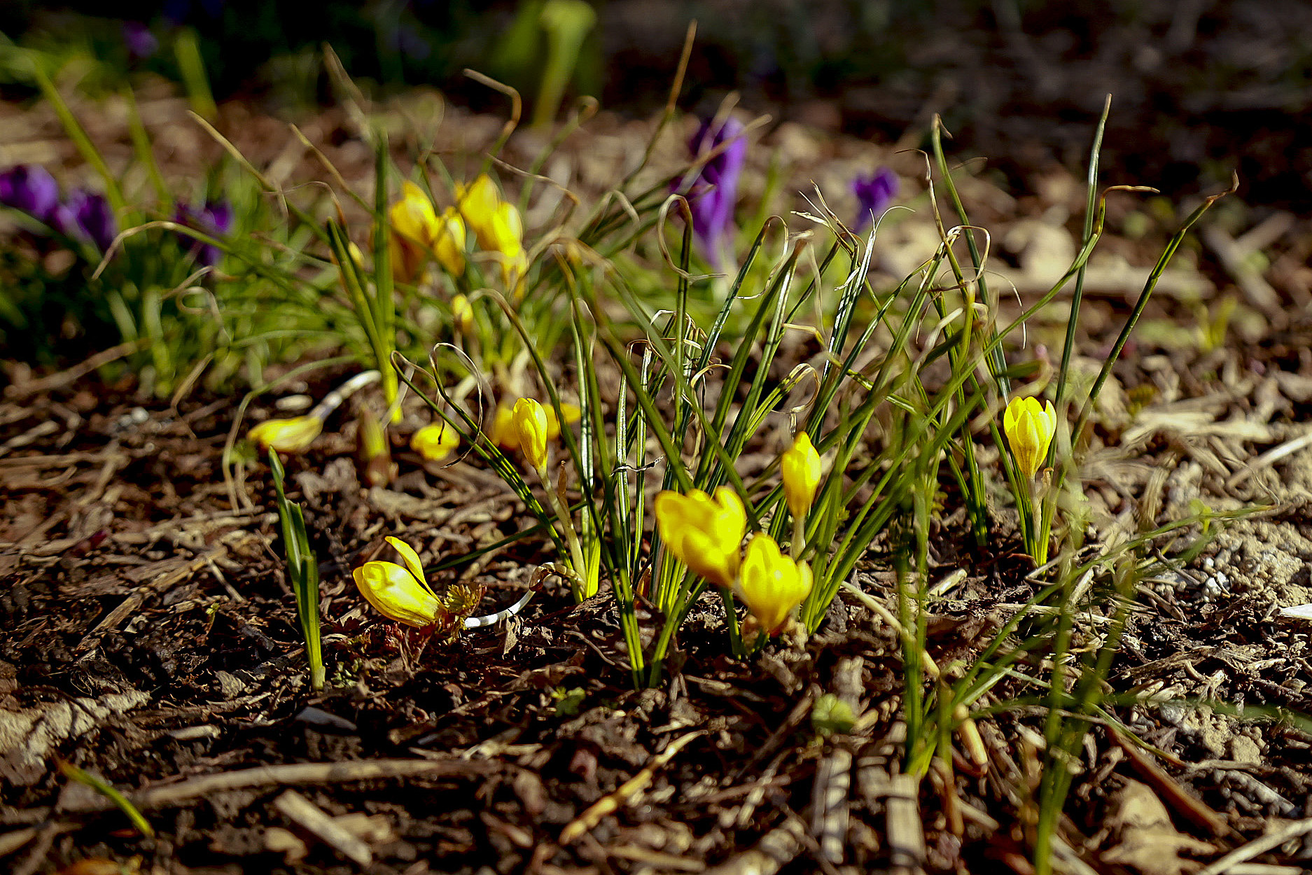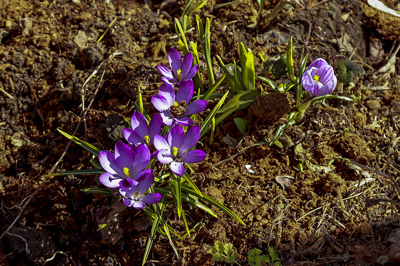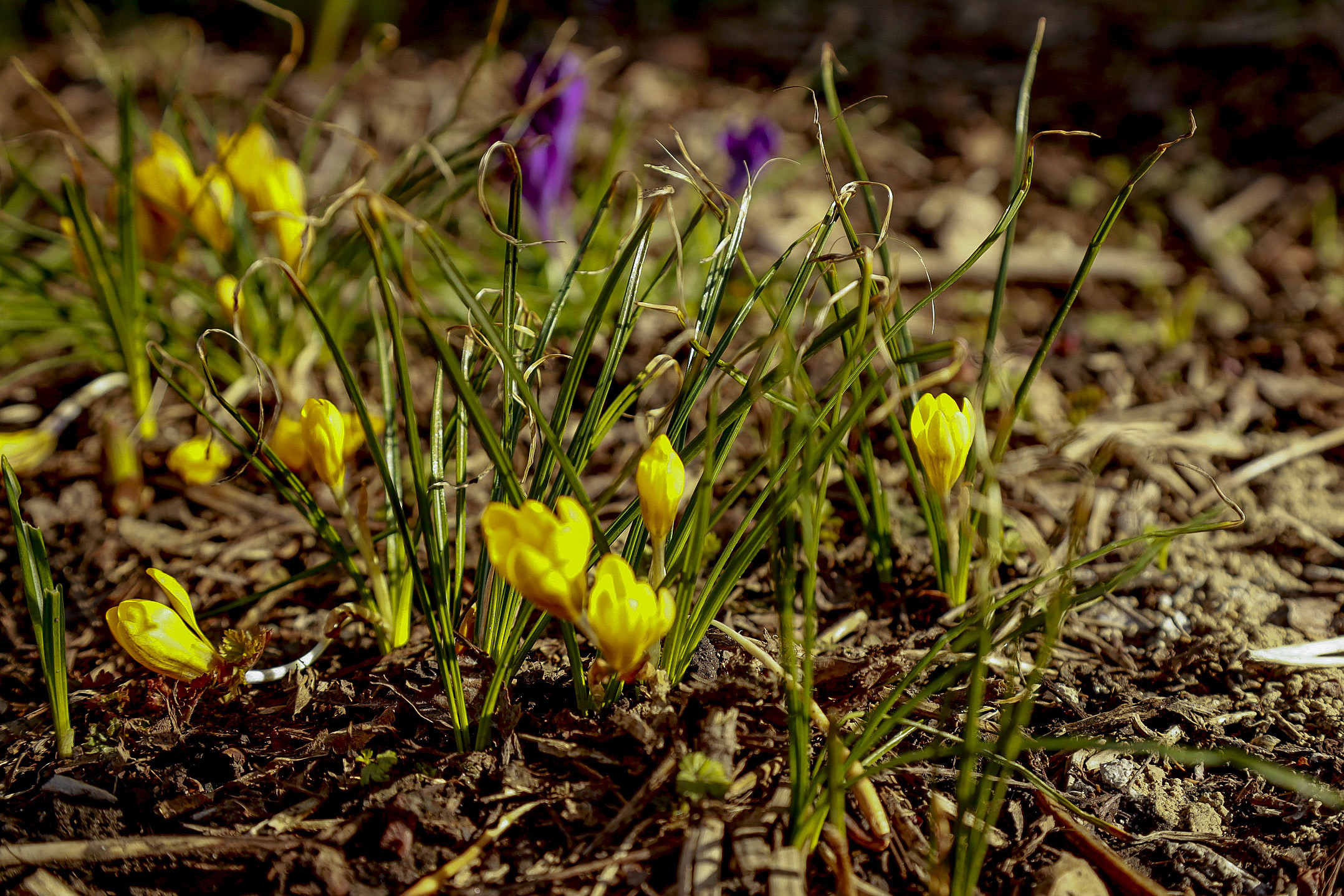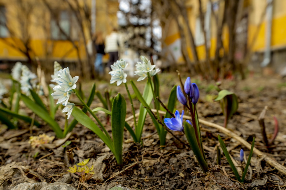 Во дворах сквозь прошлогоднюю листву пробиваются хрупкие крокусы. Ярко-жёлтые и сиреневые цветы словно говорят о том, что зима, наконец, закончилась. При хорошей погоде наслаждаться их красотой можно 10–12 дней.