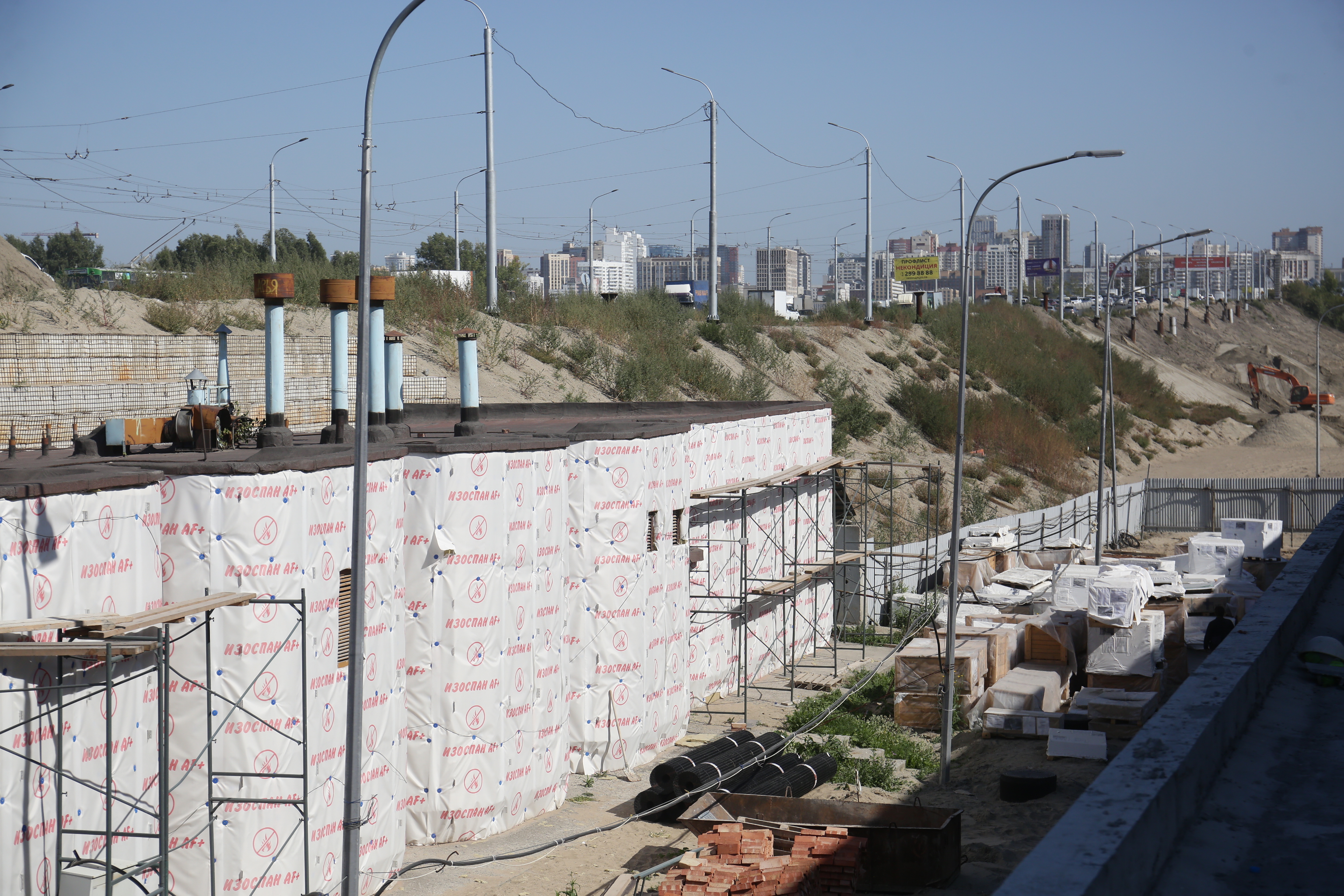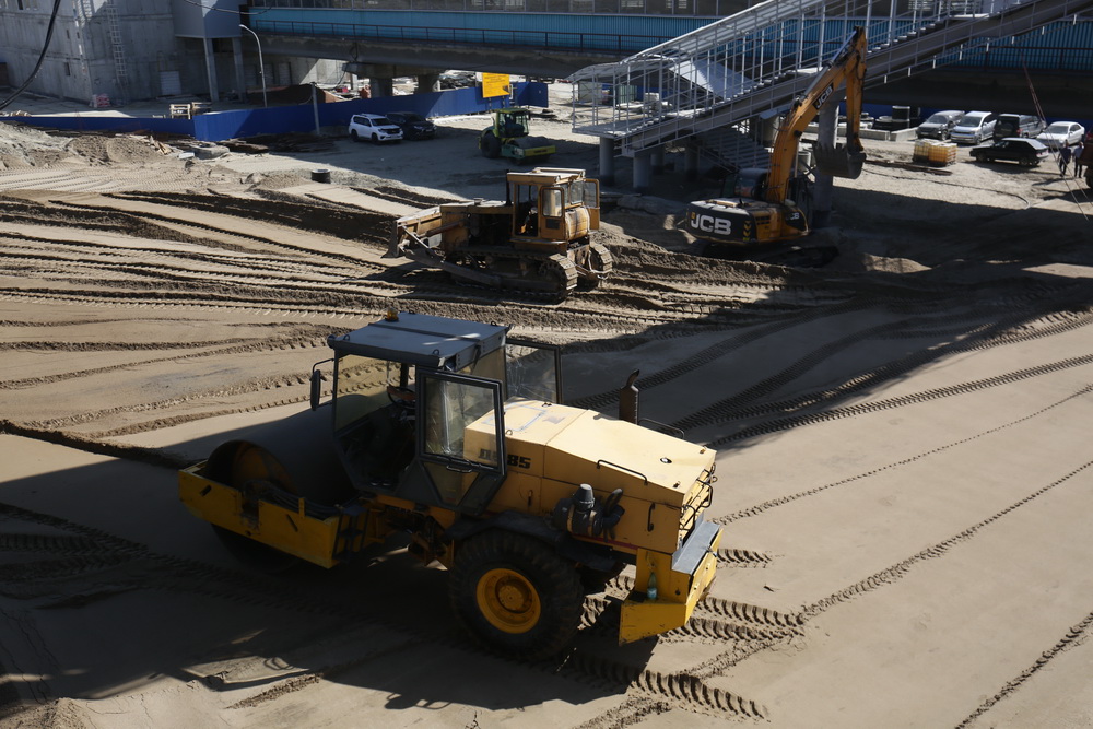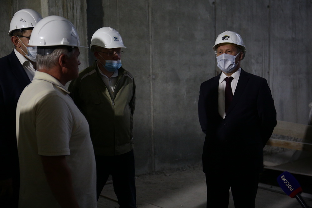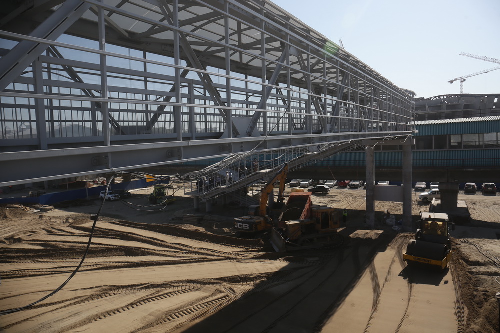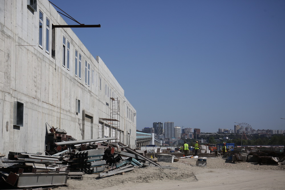 «У нас входная зона практически готова, полностью будет закрыта к концу сентября. Входная зона с той стороны, со стороны ледовой арены, сегодня находится в стройке. К концу месяца подрядчик по графику должен её закончить.