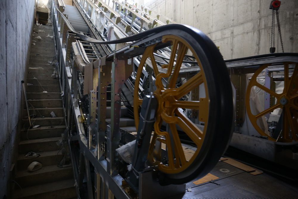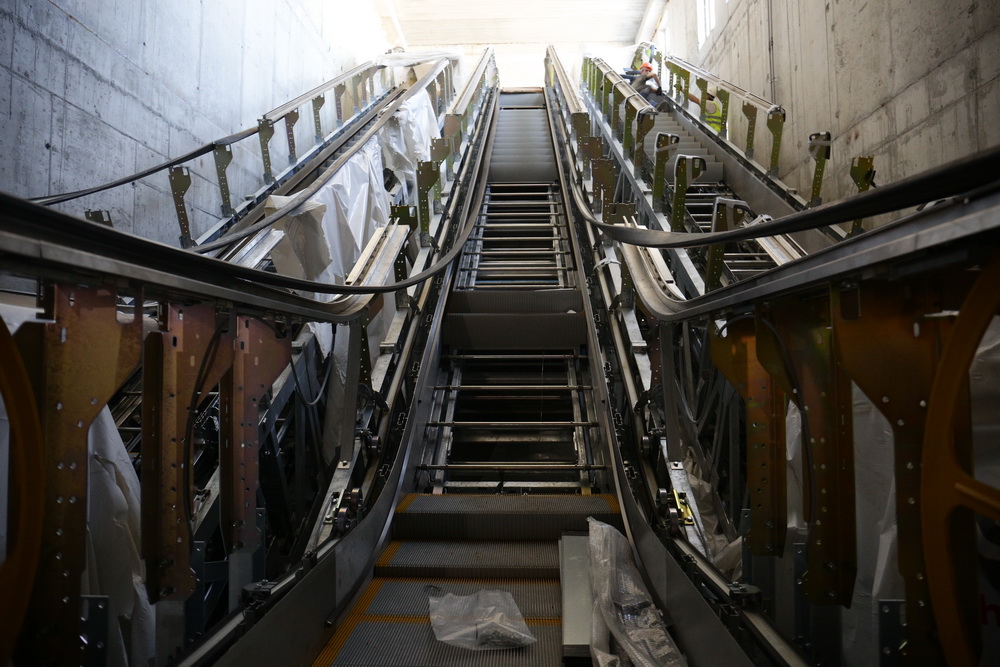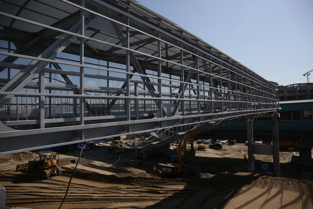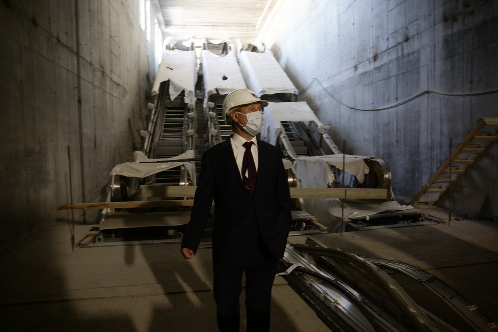 Продолжаются работы и внутри новой станции метро. Здесь уже установили все эскалаторы, осталось провести пусконаладочные работы. Но сейчас важнее закрыть контур здания, чтобы подготовить его к зиме.