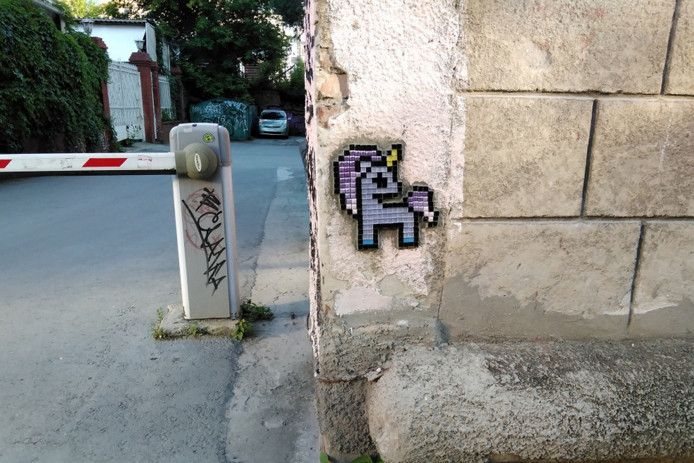 Мультяшный зайка, пёсик с сердечком, волшебный единорожек, лягушка, выглядывающая из травы, динозаврик и котик — всех этих забавных персонажей, выполненных из кусочков цветного стекла, можно встретить в самых неожиданных местах, гуляя по центру Новосибирска.