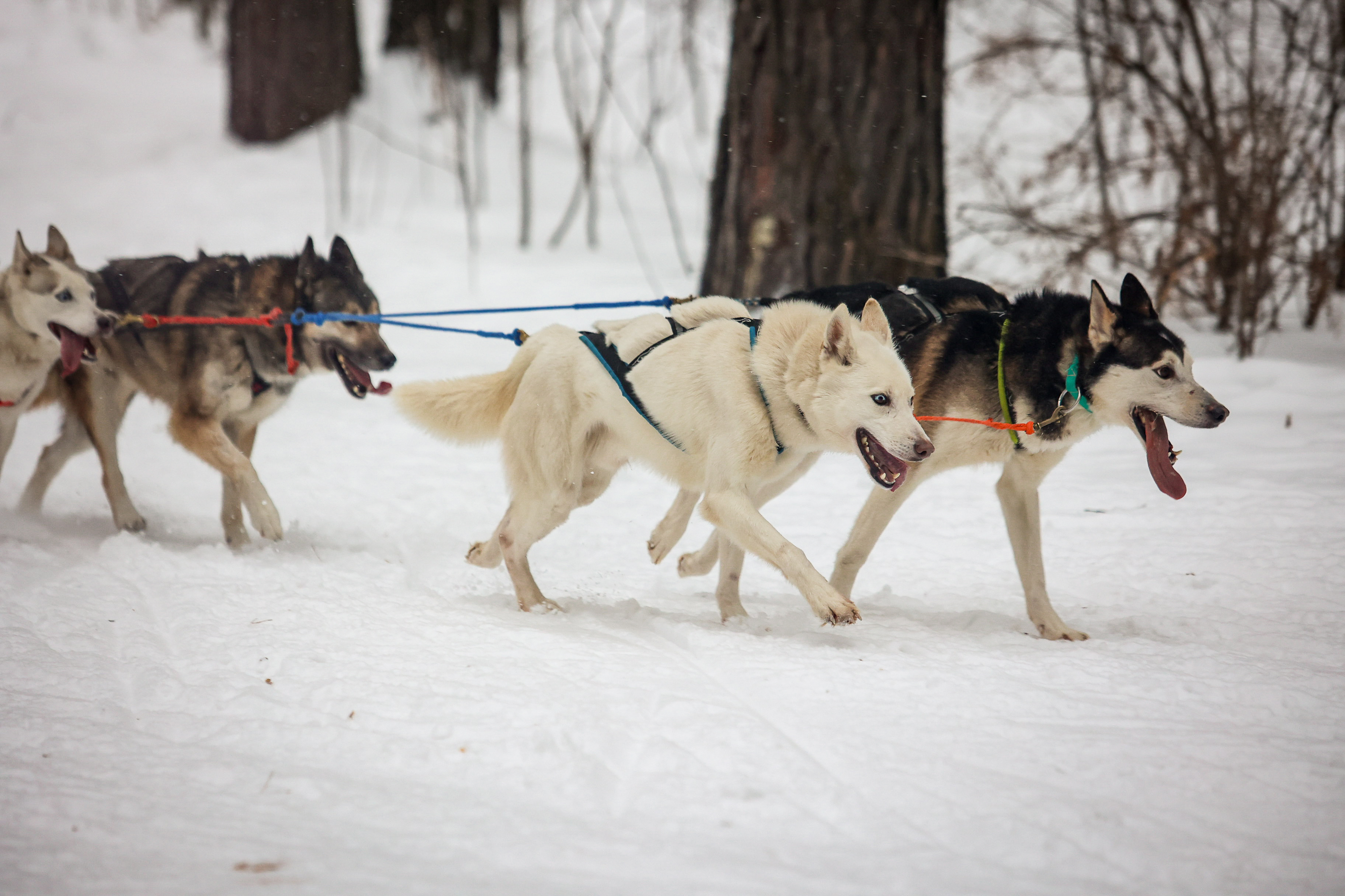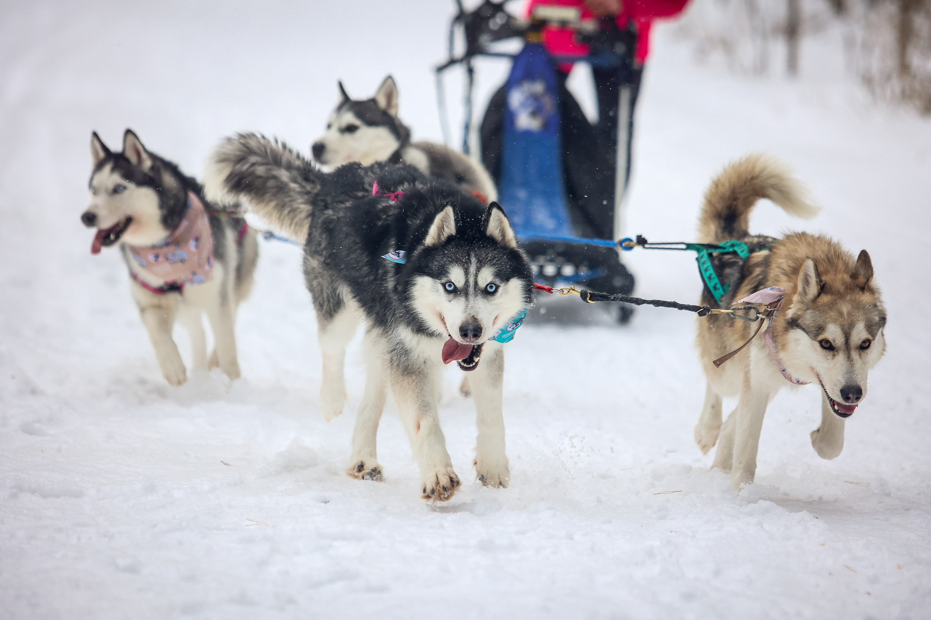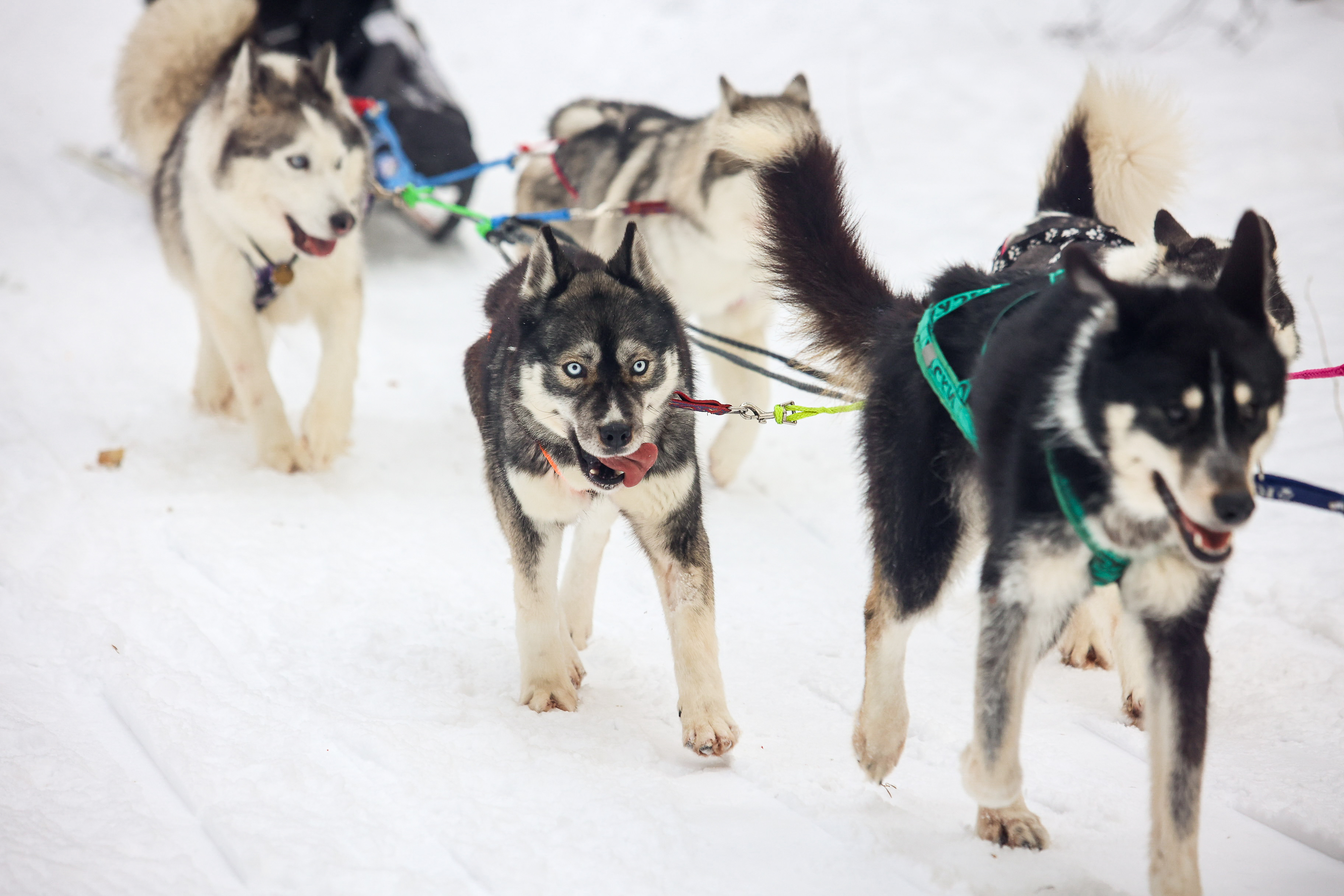 Чаще всего в заездах можно увидеть сибирских хаски и маламутов, якутских лаек и самоедов. Это миролюбивые и общительные питомцы, лояльные к человеку. У ездового спорта очень строгие правила, одно из которых — запрет на любое физическое воздействие по отношению к животным. Каюр может подгонять своих любимцев только командами и добрым словом.