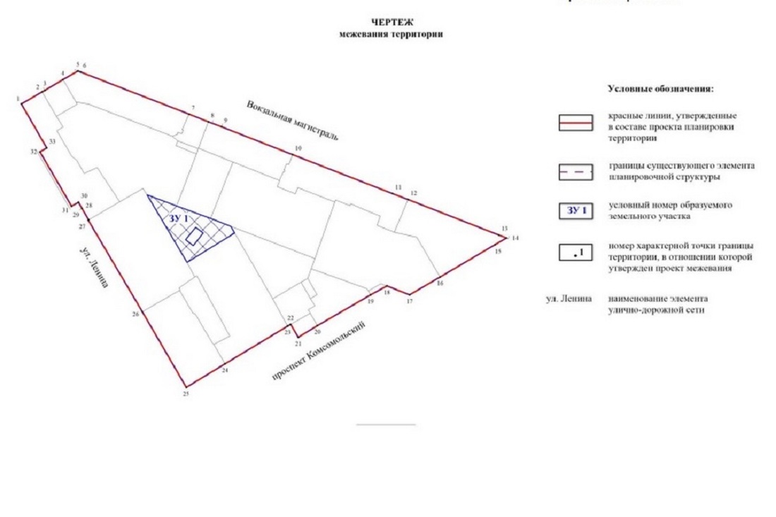 В документе говорится, что на территории, ограниченной Вокзальной магистралью, Красным проспектом, проездом Виктора Ващука, улицами Фёдора Ивачёва и Дмитрия Шамшурина, образован земельный участок площадью 1500 кв. метров. Находится он во дворе дома на Ленина, 50. Вид разрешённого использования: благоустройство территории (12.0.2) — объекты благоустройства территории; малые архитектурные формы.