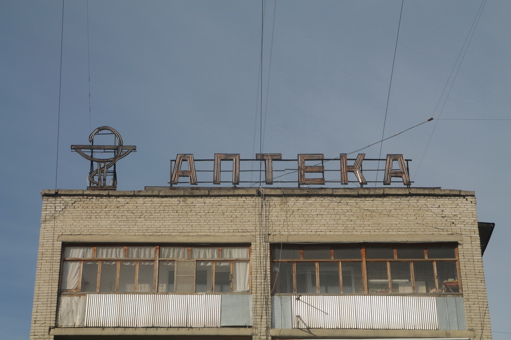 Ещё один осколок ушедшей эпохи. Вертикальная надпись «Аптека», к сожалению, утратила нижнюю букву.