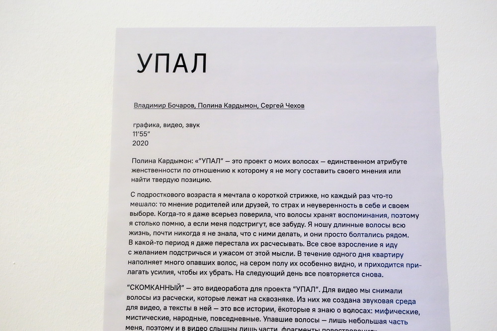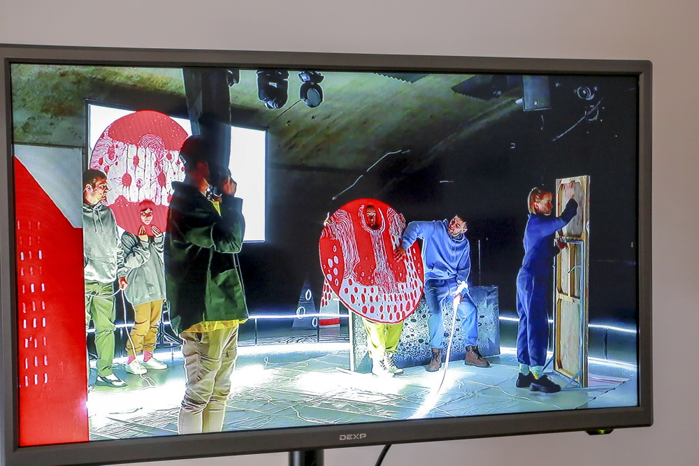 «Заход именно такой. Он между спектаклем, между текстами, картинами, эскизами — и всё это такая большая грибница получилась», — отмечает художница, участница группы «МЫК» Полина Кардымон.