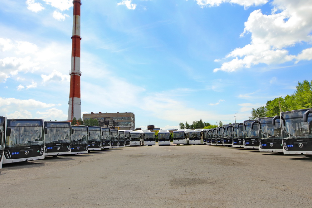 Ещё 50 больших автобусов прибыли в Новосибирск. Сейчас они располагаются на автопредприятии на ОбьГЭСе. Ожидается, что к осени смогут выйти на городские улицы — на пять маршрутов.