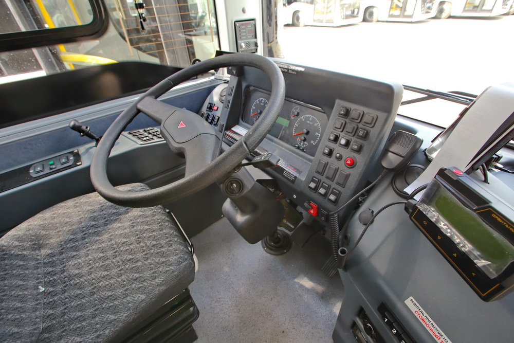 Основное отличие более ранней (а значит, более дешёвой и простой) модификации от уже привычной на городских улицах — это облицовка передней части. Различия — в цвете. Внутри тот же салон, те же самые жёлтые поручни, привычные новые сиденья, валидатор и площадка для инвалидной коляски с пандусом. Ещё одно важное отличие прячется внутри машины. У одних моделей двигатель сделан в Китае, у других — отечественный, но работает так же на природном газе.