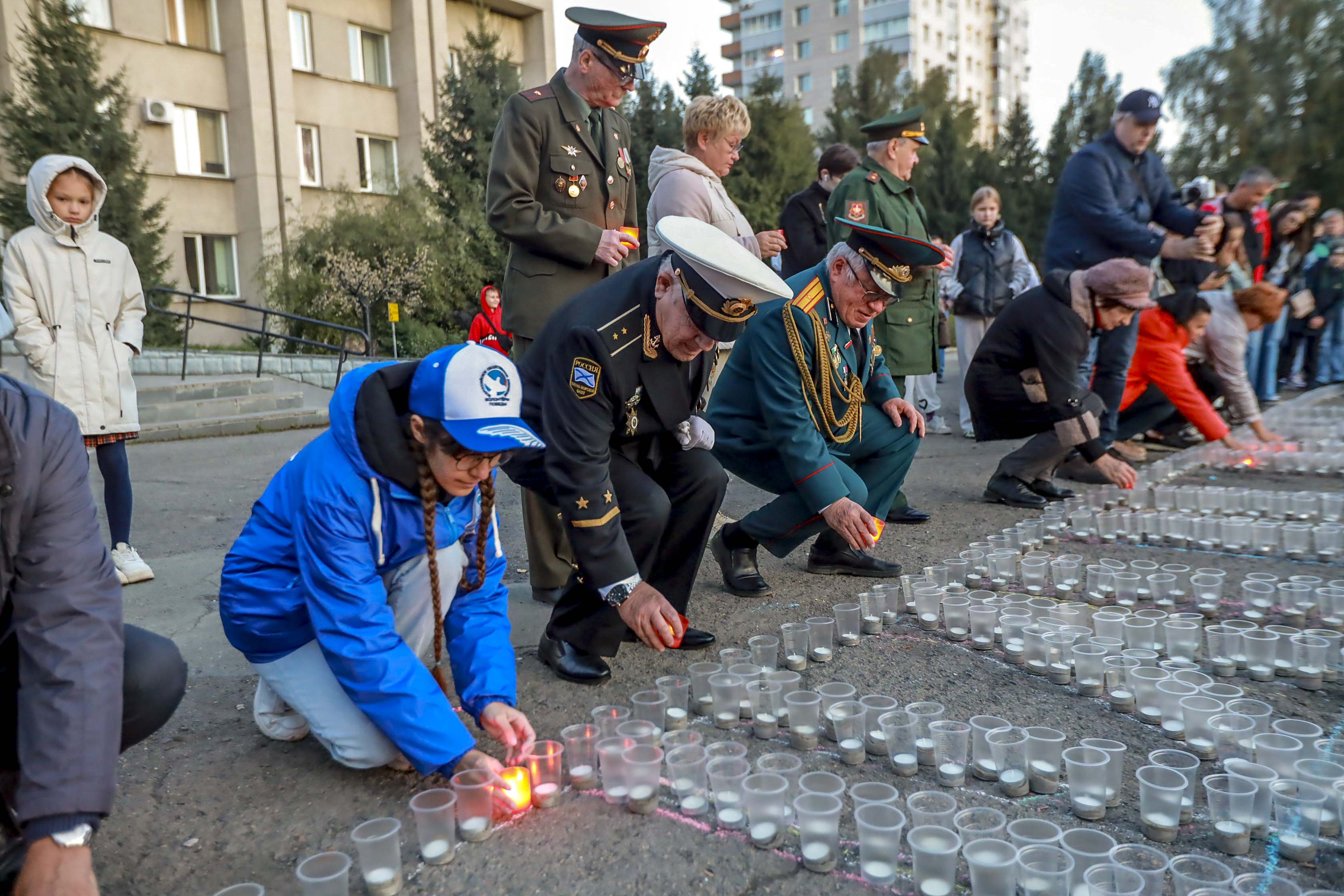Картину в память о Второй мировой выложили свечами новосибирцы