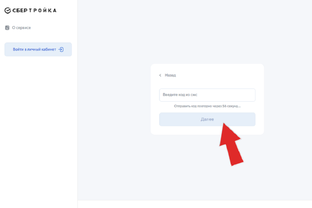 Введите код из СМС.