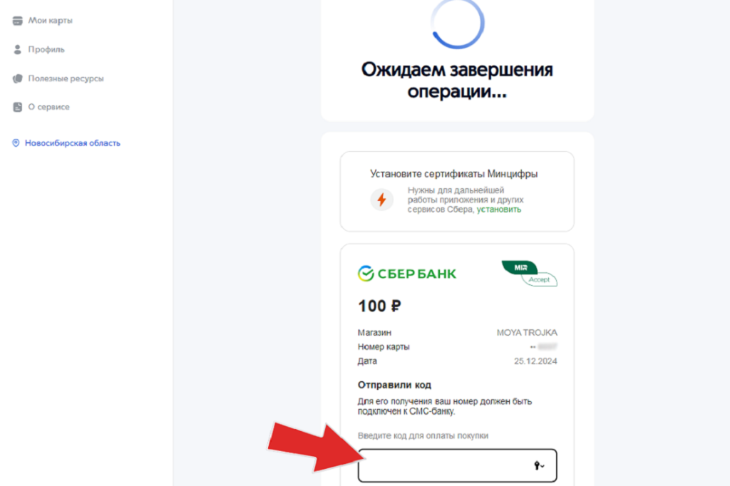 Далее последует стандартная процедура подтверждения транзакции с помощью кода из СМС или пуш-уведомления.