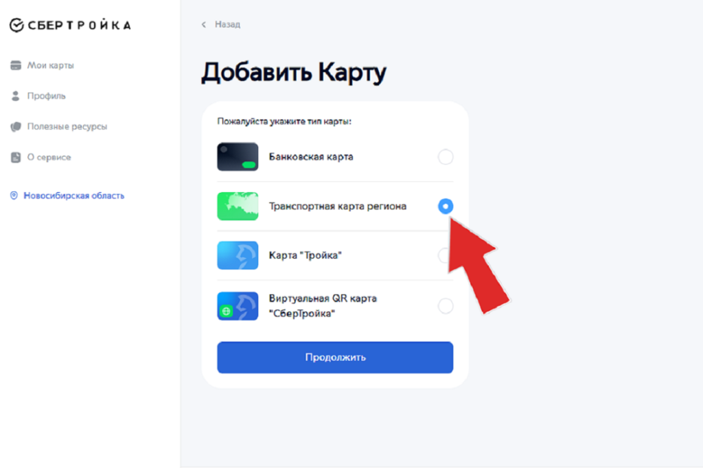 Отметьте пункт «Транспортная карта региона». И нажмите «Продолжить».