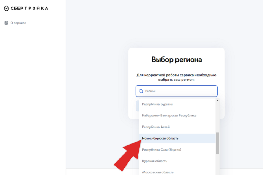 Выберите из списка регионов Новосибирскую область.