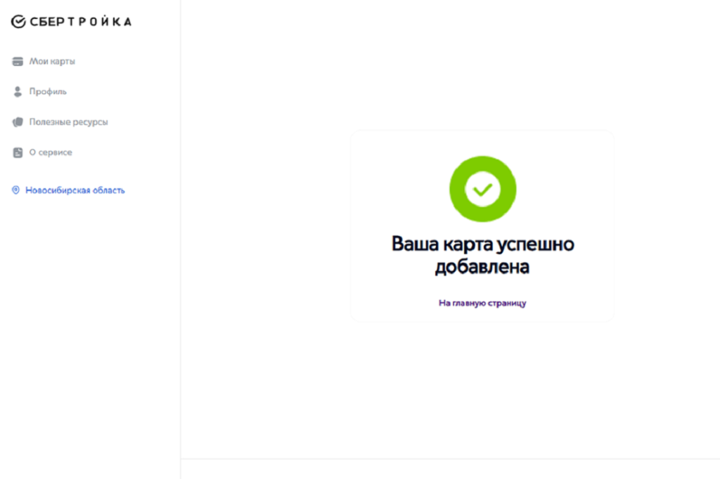 Если вы всё сделали без ошибок, система сообщит об успешном добавлении карты.