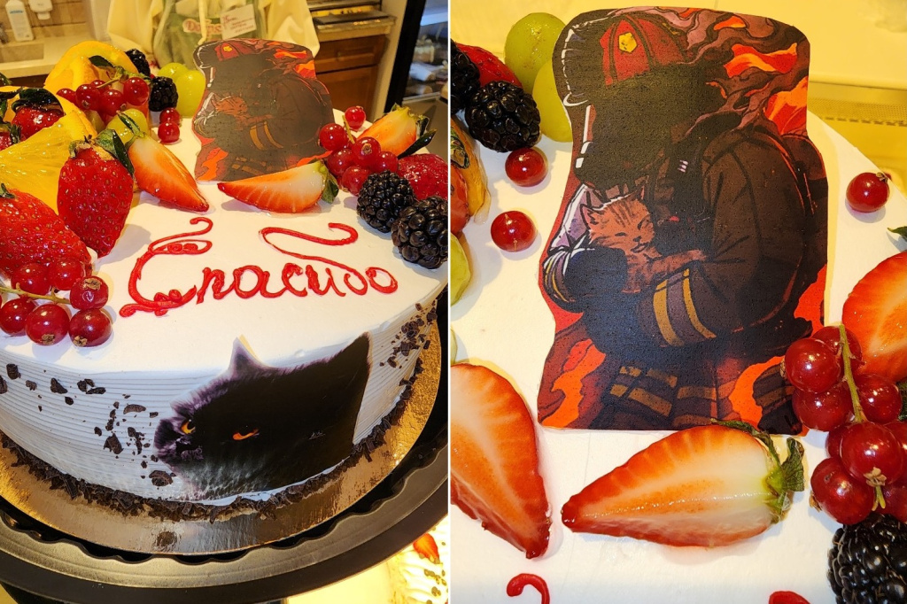 В Новосибирске пожарный вынес из задымлённой квартиры потерявшую сознание кошку Бусеньку — в знак признательности её семья подарила спасителю оригинальный торт.