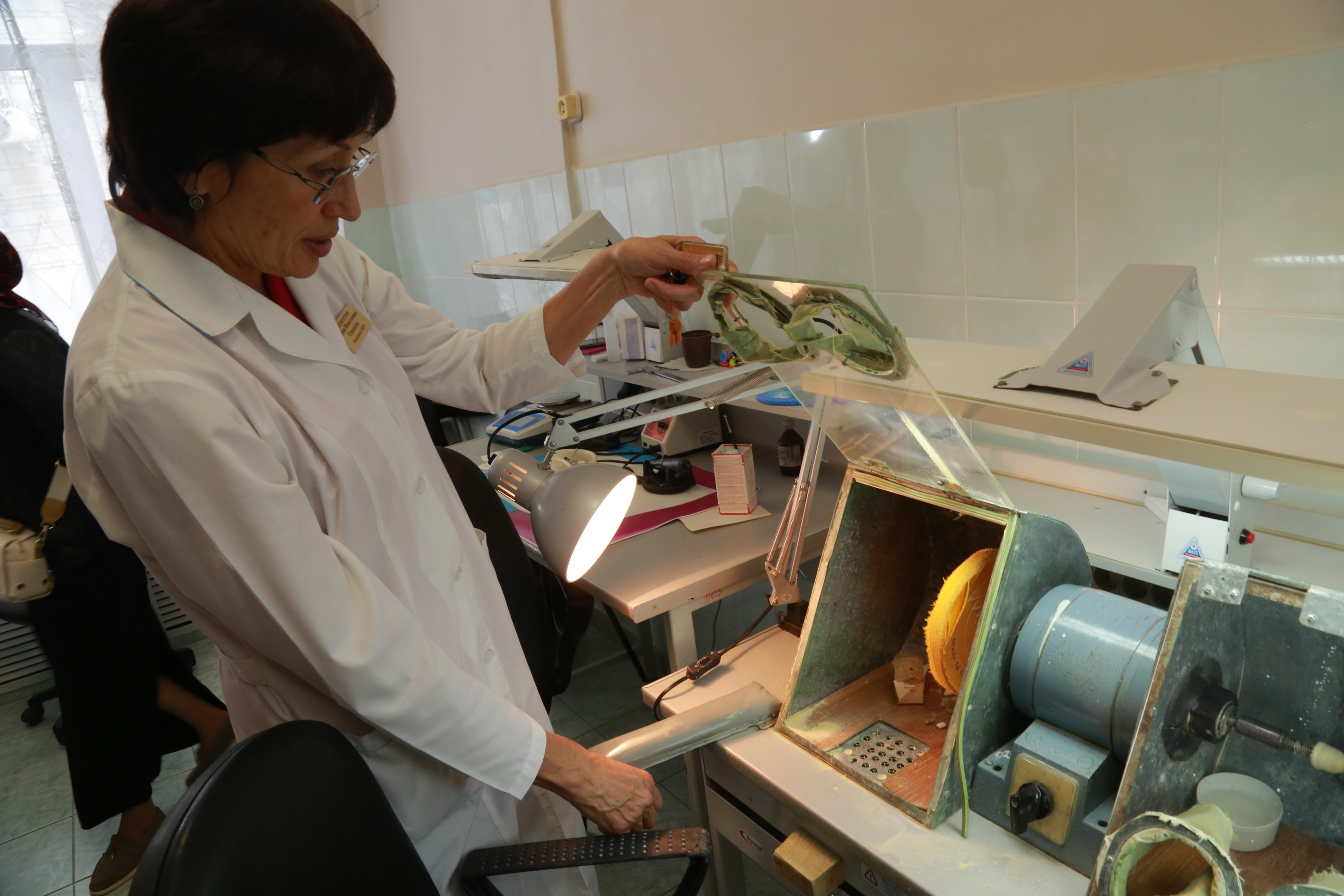 На новый протез в глазу Рамиля она смотрит как художник. То подойдёт поближе, то отойдёт. Она психолог по образованию и уже не один год работает протезистом.