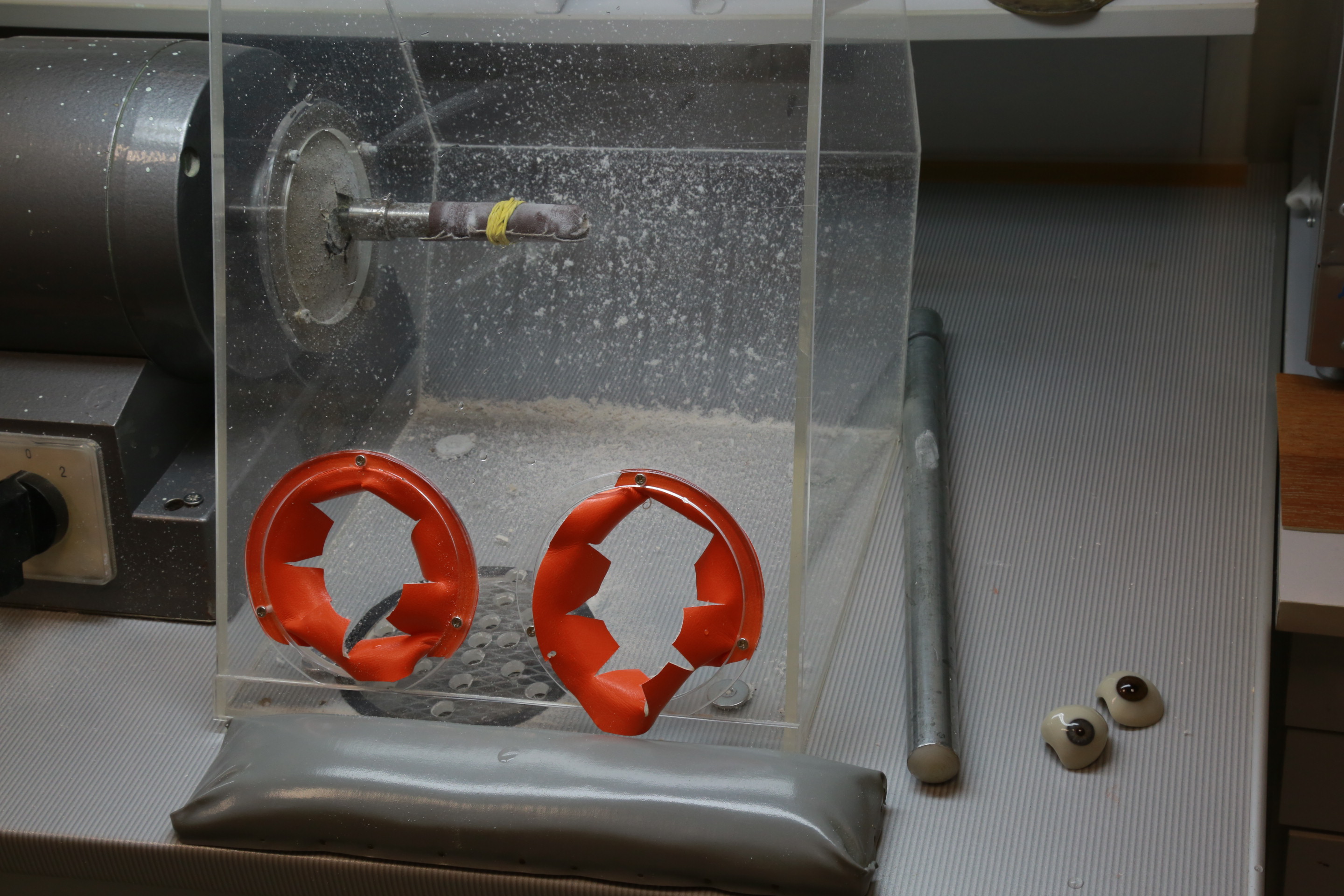 На последнем этапе склеру и радужку собирают воедино и заваривают. Глаз готов. Если и мастеру, и пациенту всё понравилось, протез шлифуют и отдают носить.