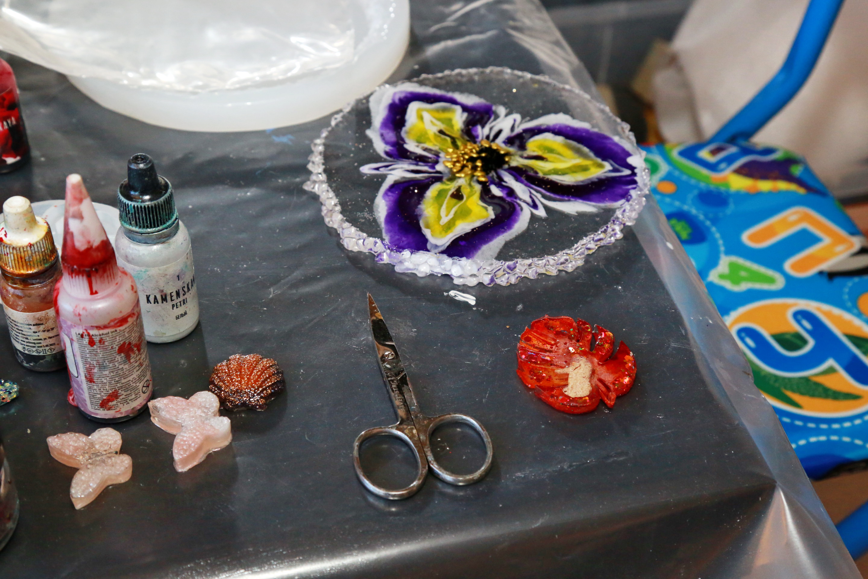«Эксперименты с эпоксидной смолой — это мой постковидный синдром», — шутит доктор. Множество специальных приспособлений появилось в доме Елены в 2021 году и вытеснило другие хобби.