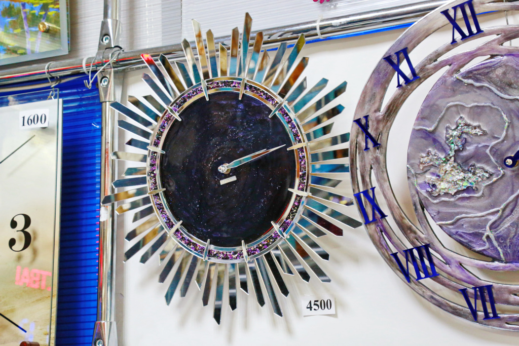 Строгие и забавные. Броские и деликатные. Абстрактные и детализированные. Монохромные, разноцветные и меняющие оттенки в зависимости от освещения. В доме врача Елены Марковой стрелки бегут по десяткам циферблатов. Все часы — её собственного изготовления.