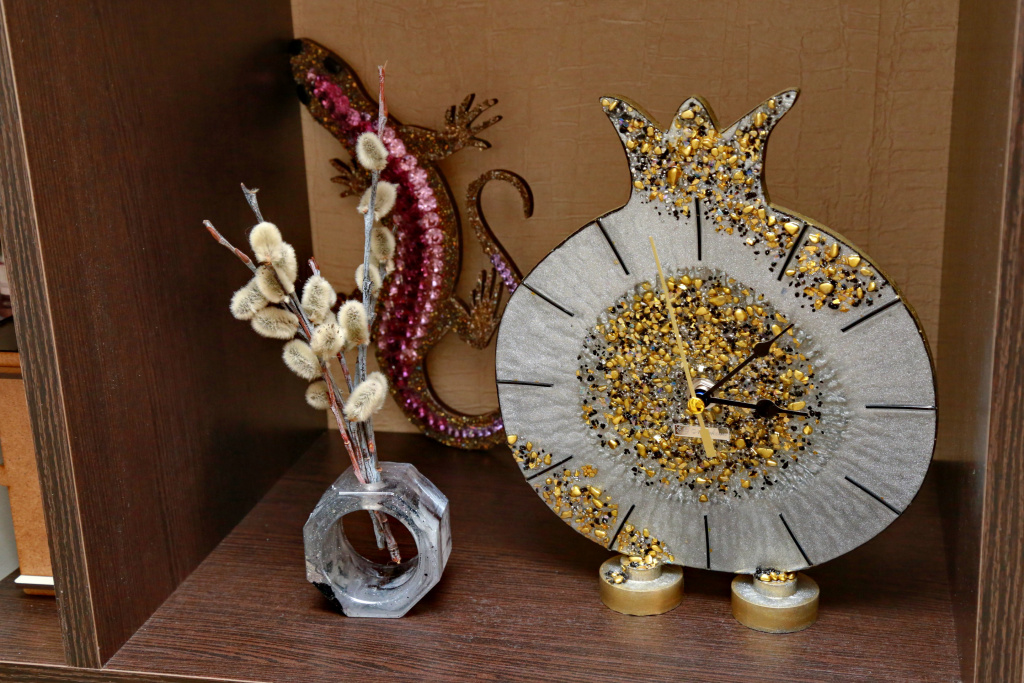 Сначала я окончила специальную школу и научилась базовым принципам работы с эпоксидной смолой, потом начала изучать отдельные техники на мастер-классах. И вот теперь могу придумать что-то своё, воплотить задумку и любоваться», — говорит Елена.