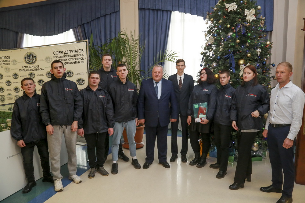 «Сегодня торжественно вручаем удостоверения народного дружинника студенческой дружине „Молодёжная“, которая с 2016 года действует на территории города и сейчас обновлённым составом приступает к своим обязанностям. Они прошли спецпроверку в органах внутренних дел, прошли курс теоретической и практической подготовки на базе штаба. Во время прибытия поезда Деда Мороза они будут работать полноценно — дебютный выход», — рассказал секретарь штаба народных дружин Новосибирска Сергей Борисов.