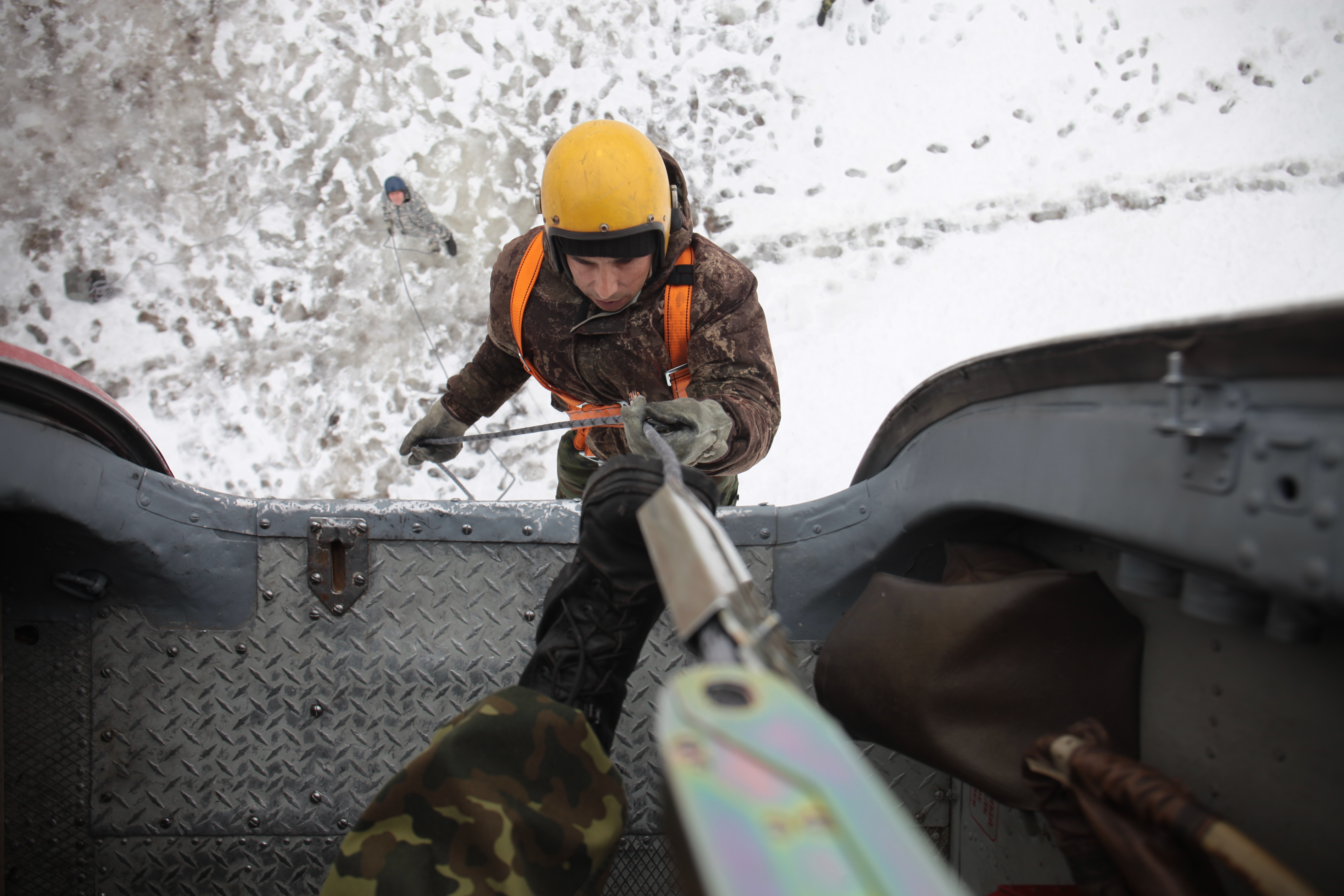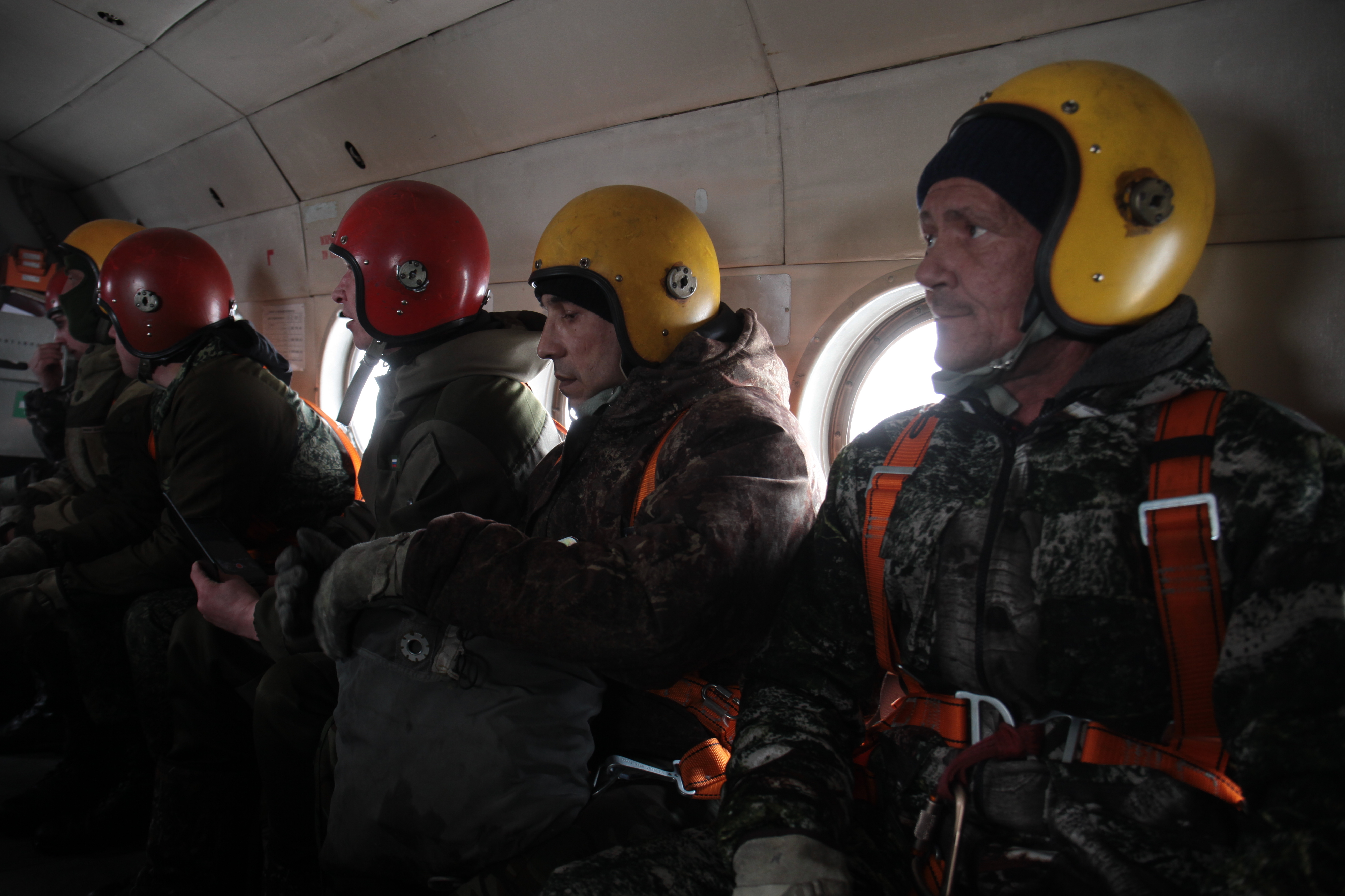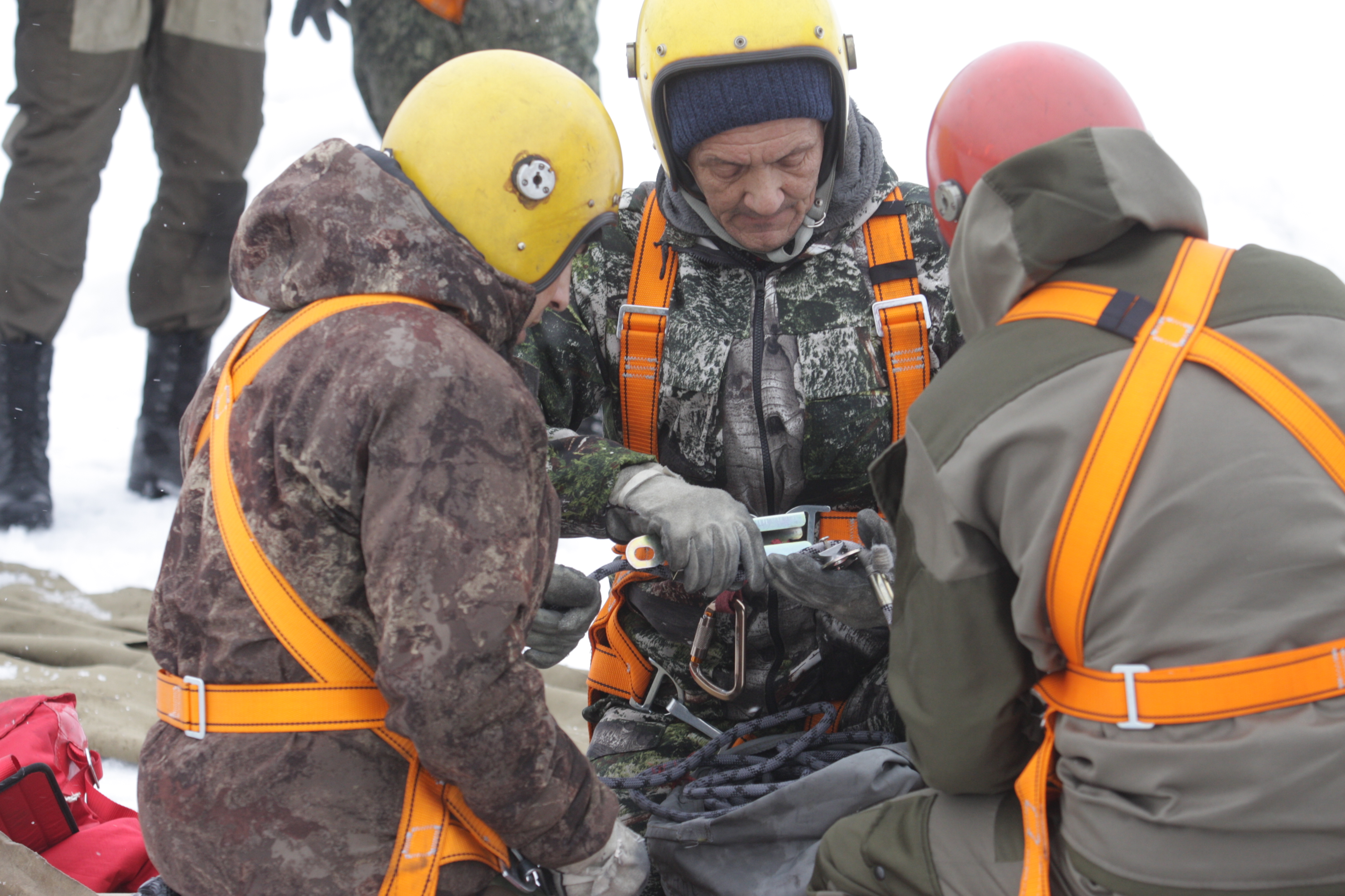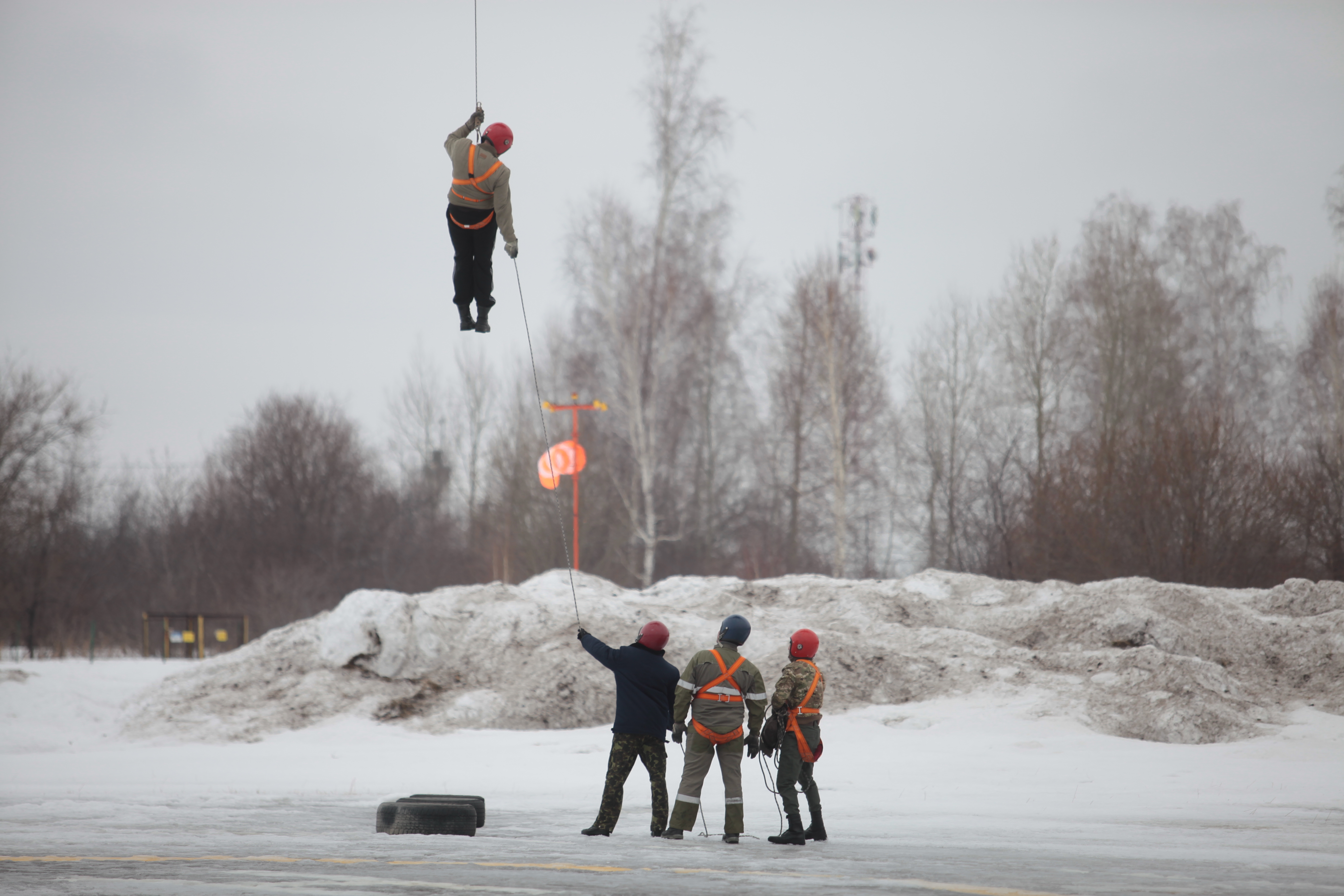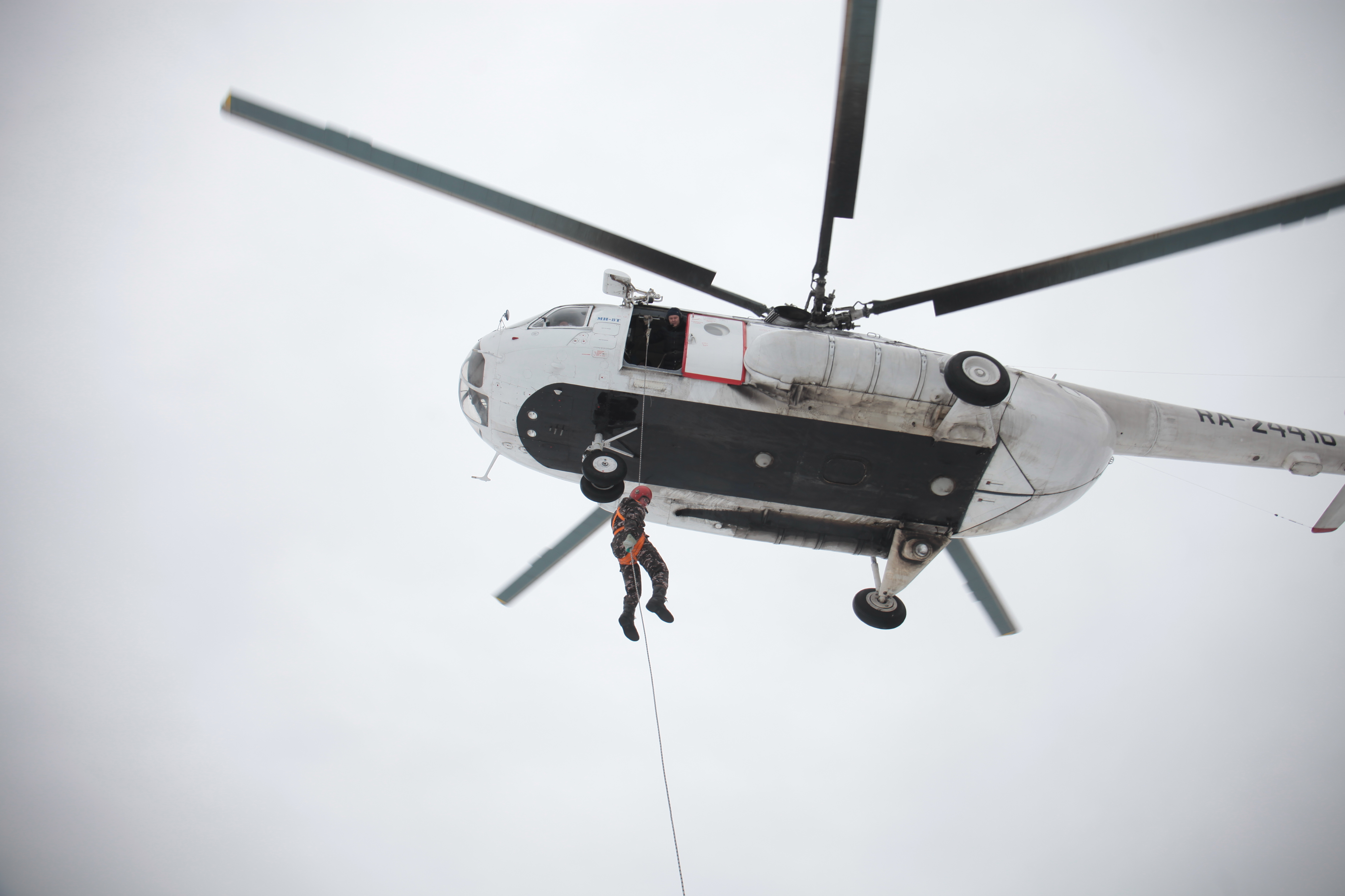 Подобные воздушные тренировки проводят два раза в год: весной и осенью. Пожарный-десантник должен спускаться из вертолёта со скоростью три метра в секунду — не больше, иначе трос быстро нагреется.