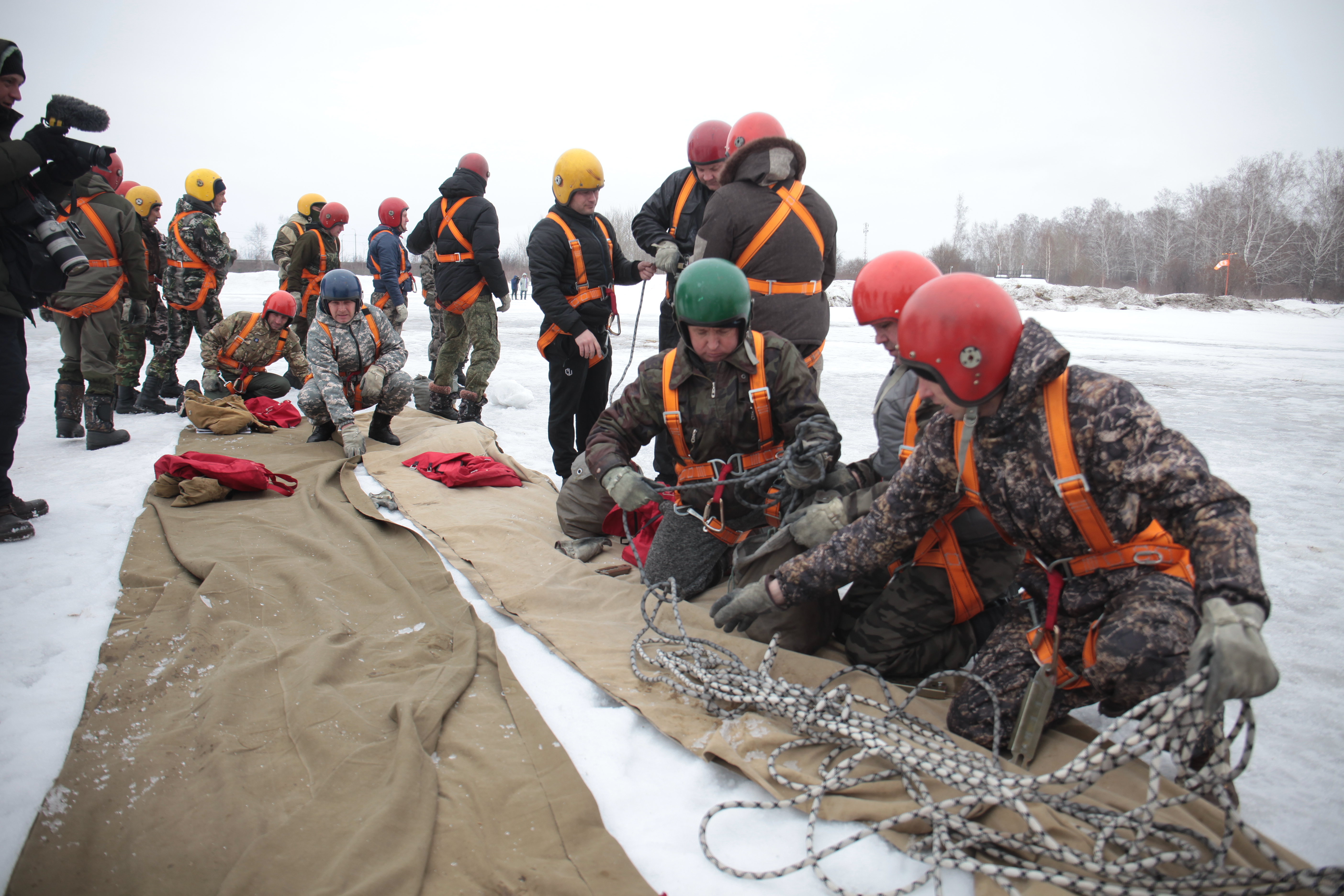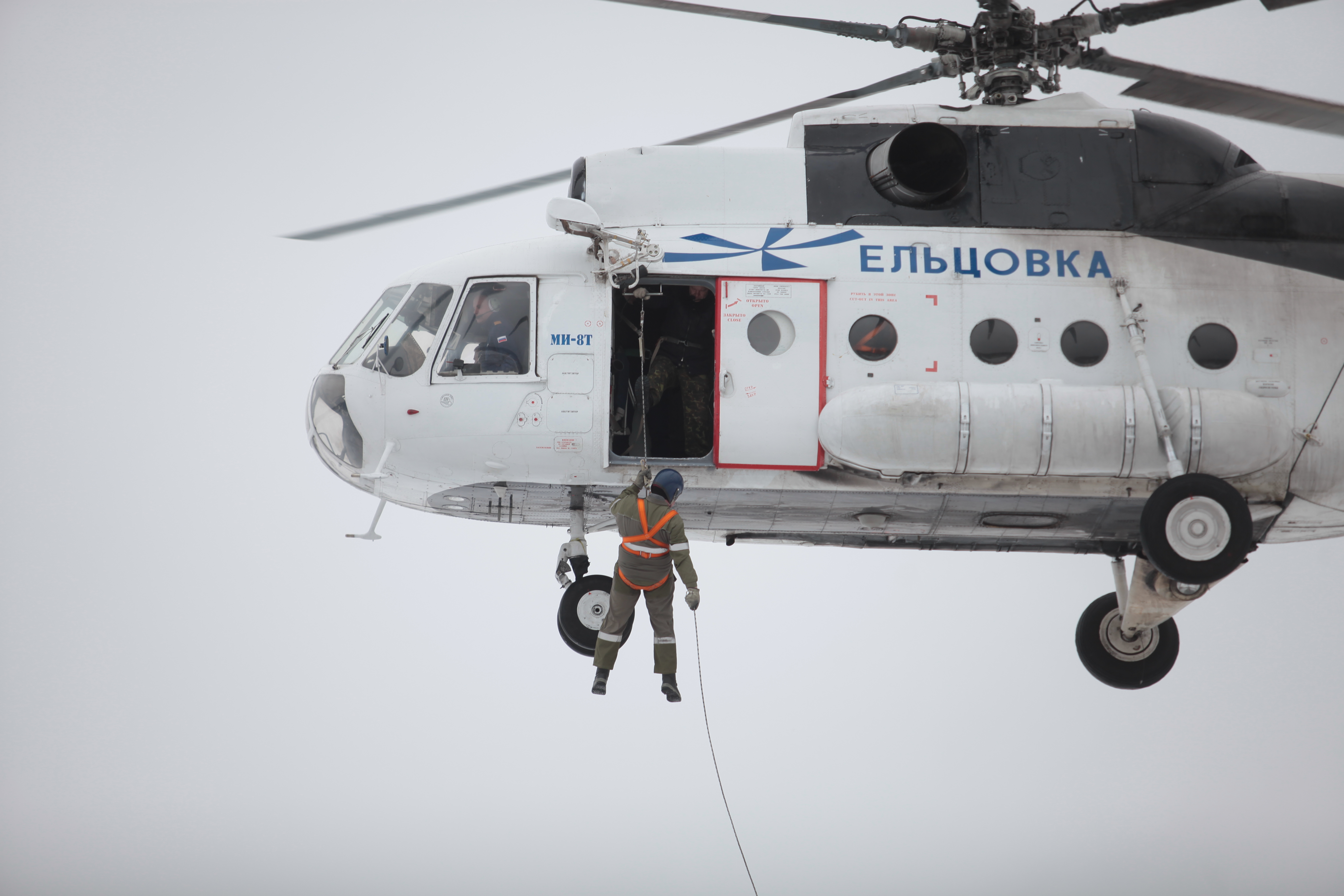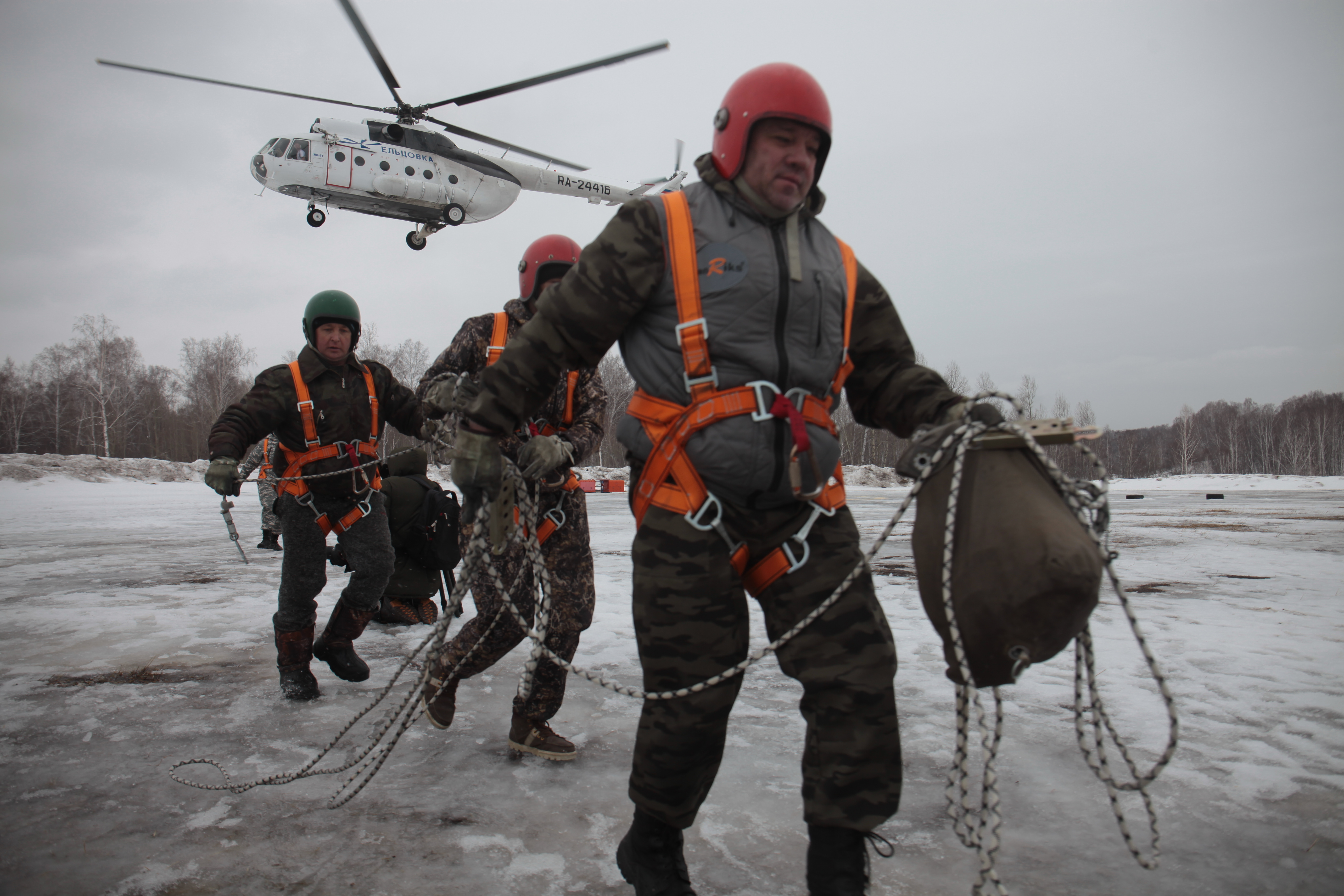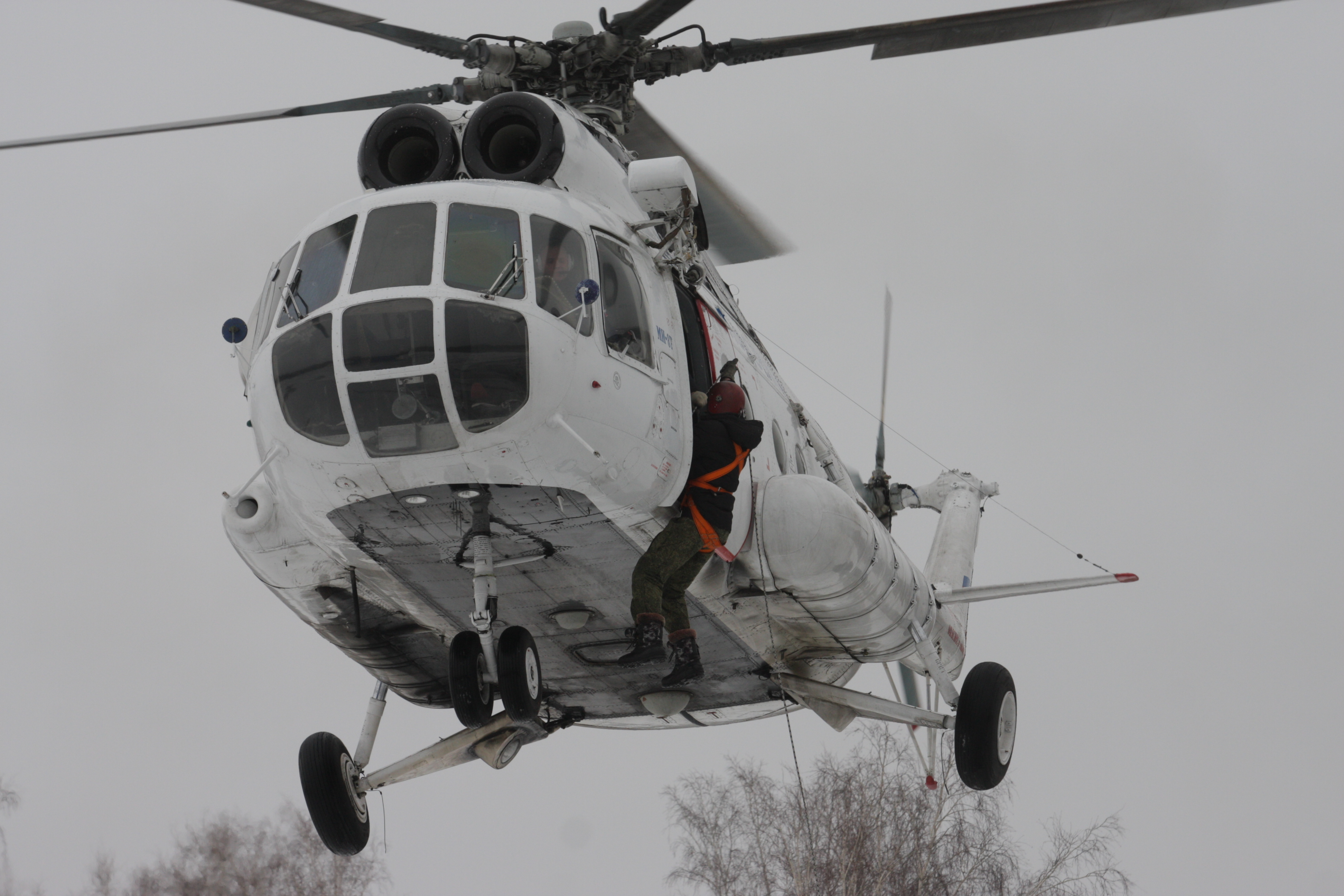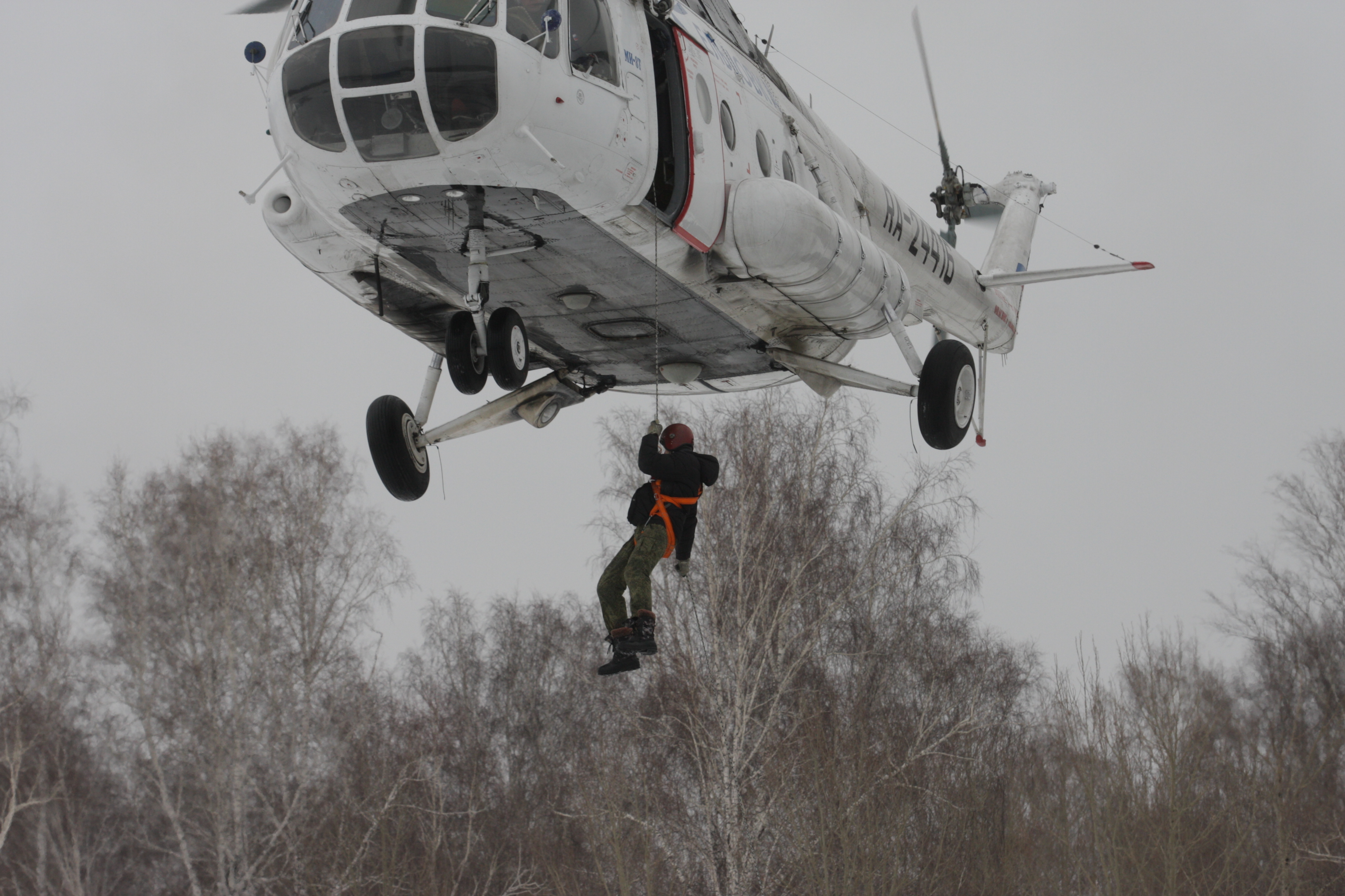 Пожарный десант отработал спуск с вертолёта Ми-8 под Новосибирском