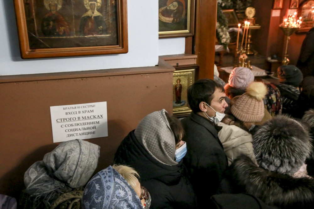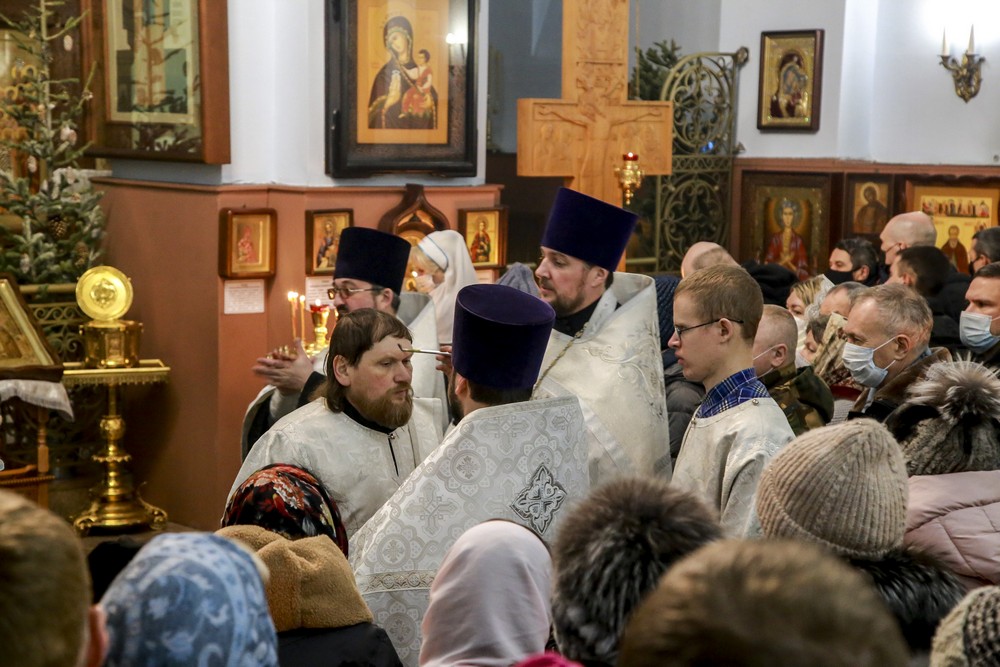 Так, десятки новосибирцев пришли на рождественскую службу в Знаменскую церковь (храм в честь Абалакской иконы Божией Матери) на улице Учительской. На кадрах фотосъёмки видно, что в помещении достаточно многолюдно. Вместе с тем прихожане попытались соблюсти требования санитарной безопасности: многие надели защитные маски.