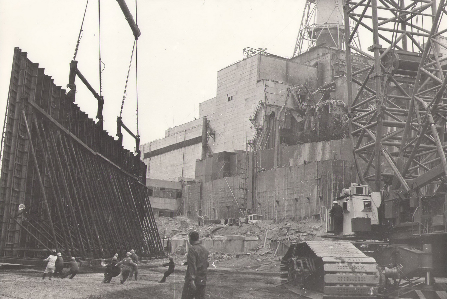 Было, конечно, несколько страшных моментов. Например, когда наш тысячетонный кран при подъёме здоровенной балки стал крениться и чуть было не рухнул. Или когда прямо у нас на глазах буквально в 50-ти метрах разбился вертолёт, который разбрызгивал специальную жидкость для дезактивации радиоактивной пыли, — винтом зацепился за ванты крана и моментально взорвался.