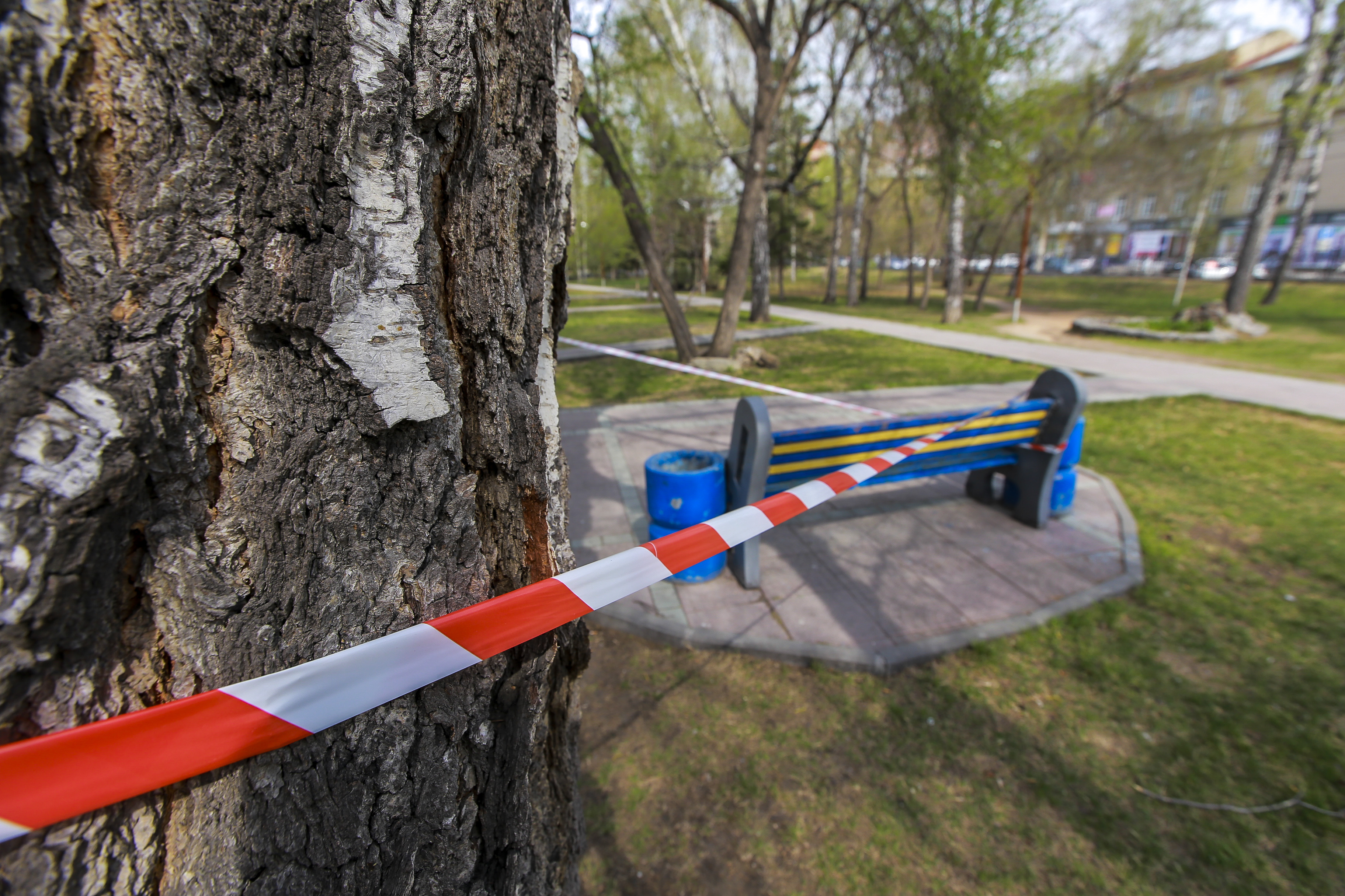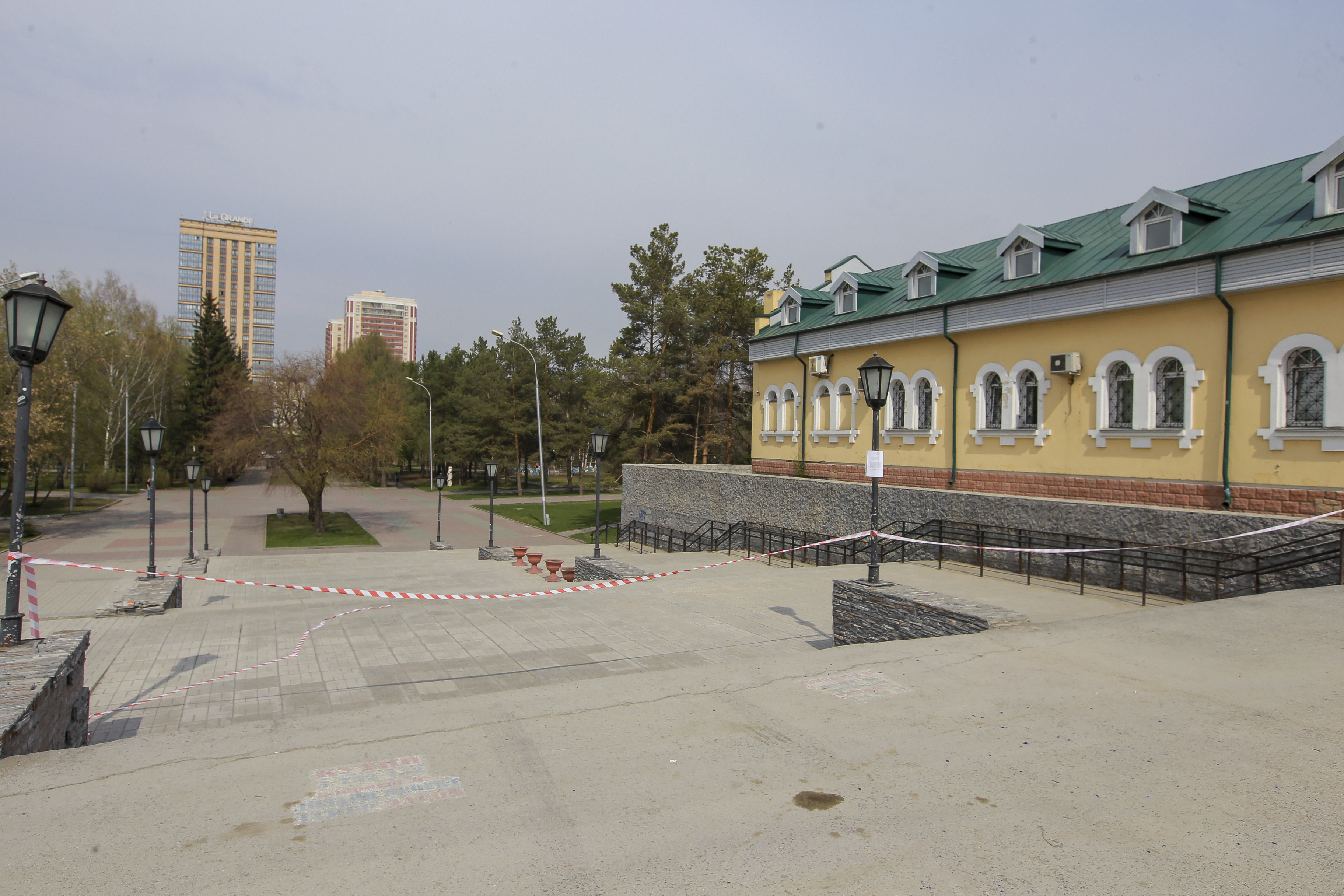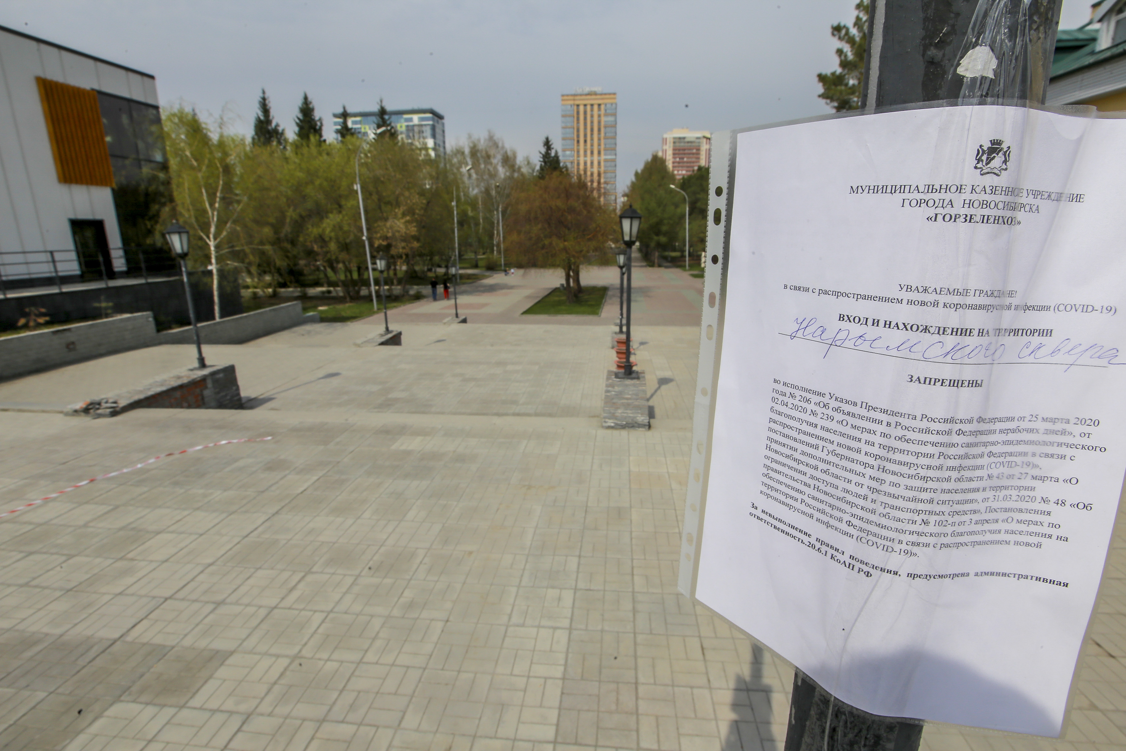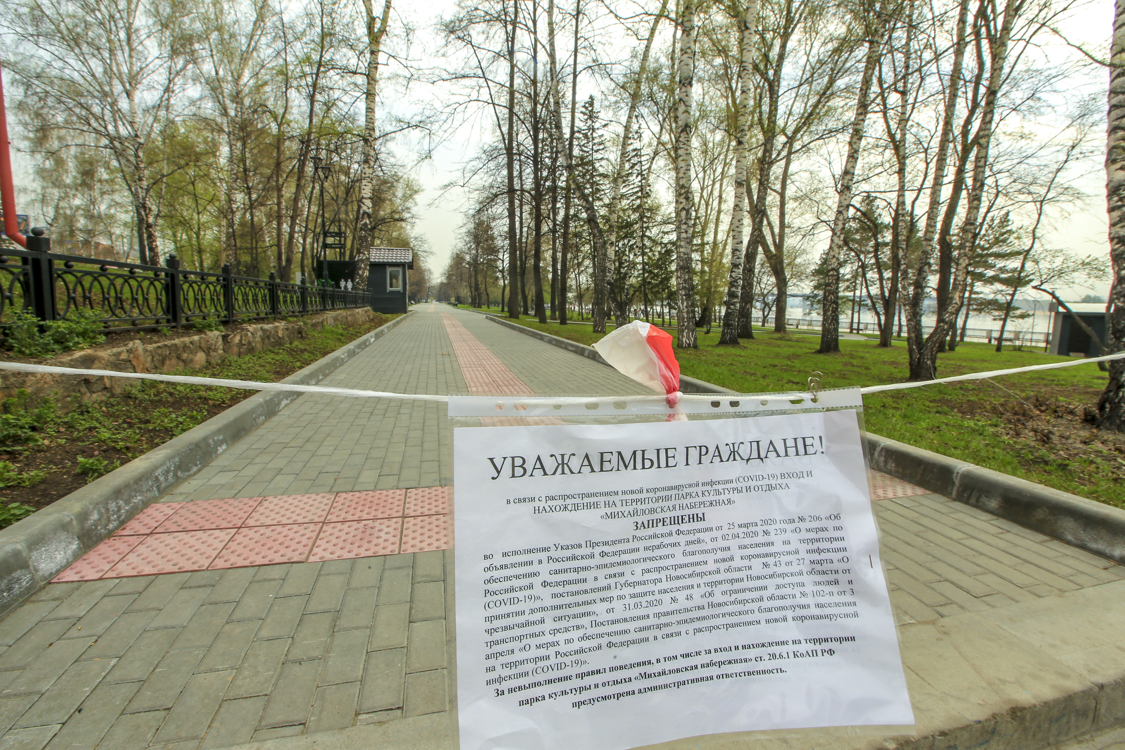 Что происходит в закрытых на карантин парках и скверах — смотрите в фоторепортаже «Новосибирских новостей»: